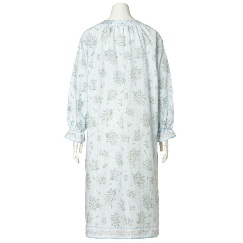 上品で華やかな総柄が魅力の長袖ナイティ。ライン状の縁模様もアクセント。袖口はインゴムにし、甘さをプラス。まくって袖がとまるので家事もしやすい仕様に。一枚ではもちろん、前開きデザインなので羽織としても着こなし可能。ガーゼ素材は洗濯するたびに風合いが増し、さらに肌になじみます。