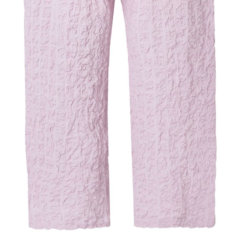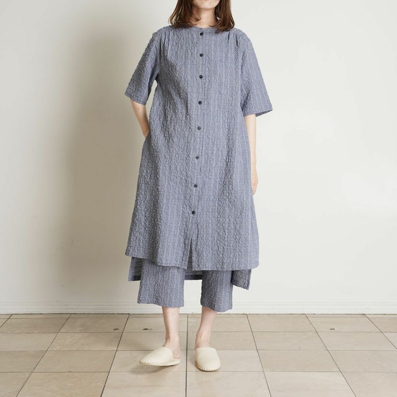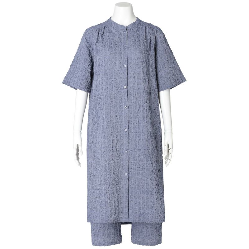 生地を収縮させ凹凸感のあるシャーリング素材を使用したナイトウェア。肌離れが良く蒸し暑い夏にもぴったりで、エアリーな着心地を楽しめます。シンプルでありながら、シャーリングの立体感が加わることで、可愛らしくも上品な印象に。