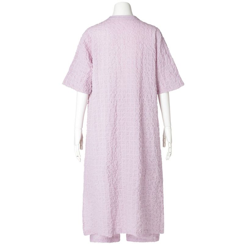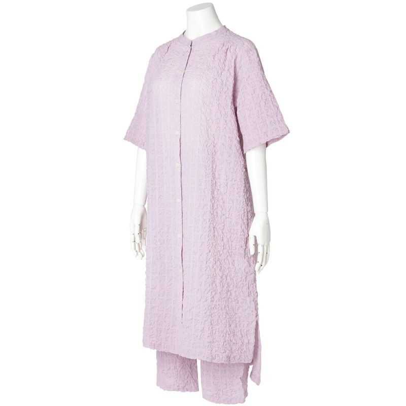 - 身長:167cm / 普段サイズ:L 母の日のプレゼントに贈りました。淡いラベンダーピンクの色味がとても上品で、肌のトーンを明るく見せてくれそうです。涼しげで立体感のある素材は見た目にも美しく、着心地もさらっとしていてこれからの季節にぴったり。母も「夜のひとり時間が楽しみ」と喜んでくれました。デザインも可愛らしすぎず、大人の女性にもぴったりです。良い贈り物ができて大満足です。
