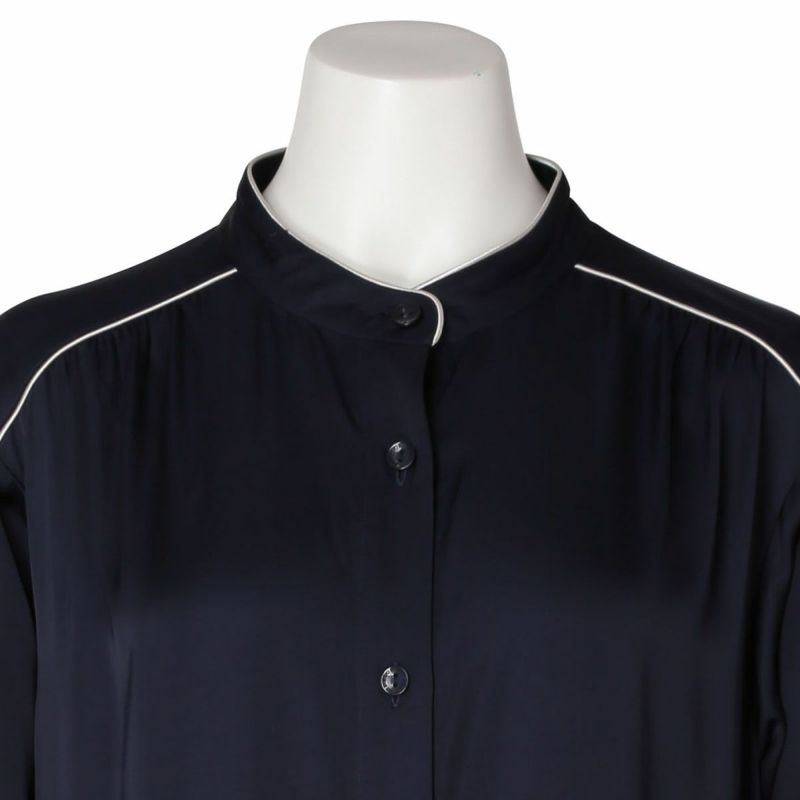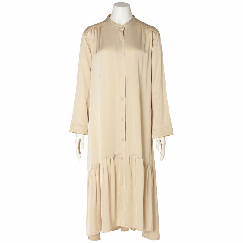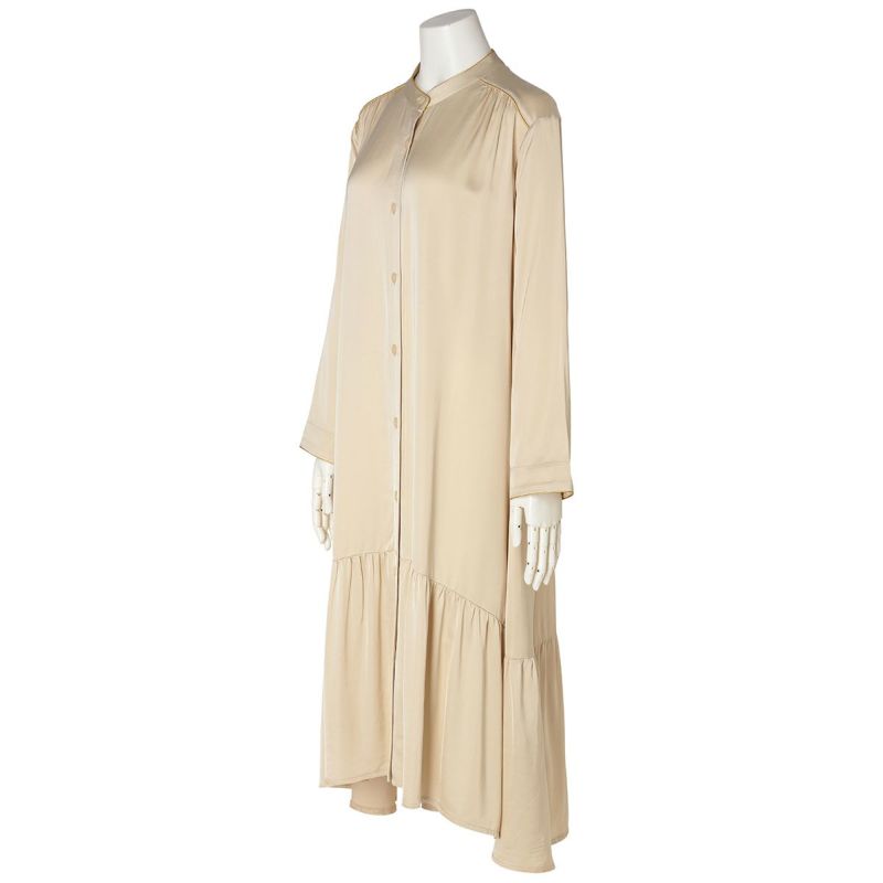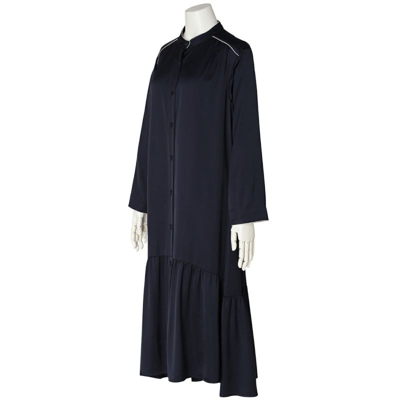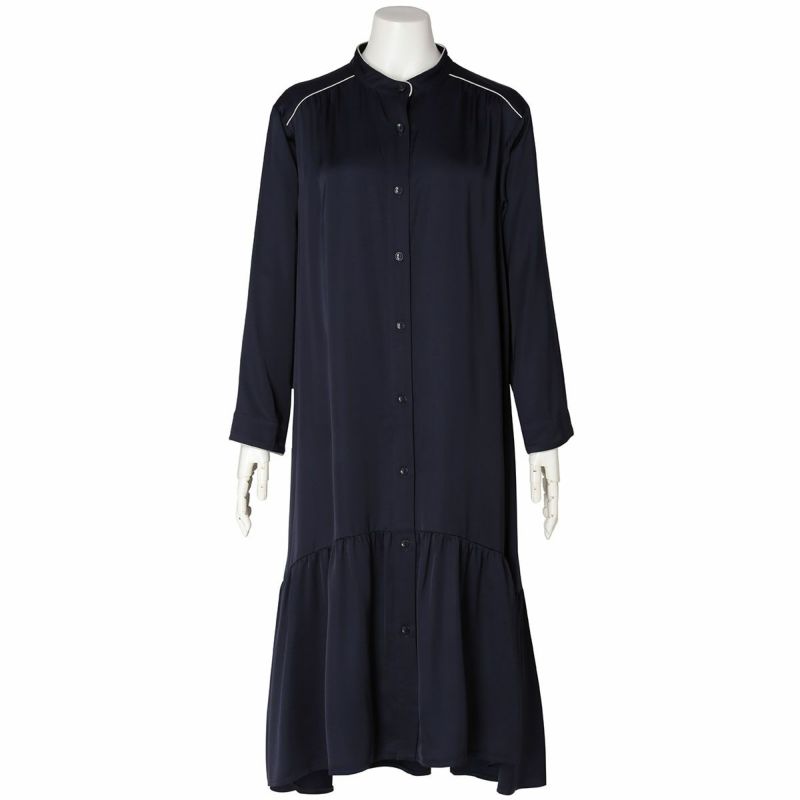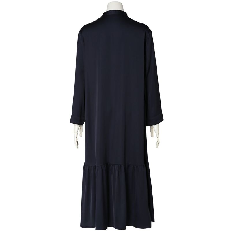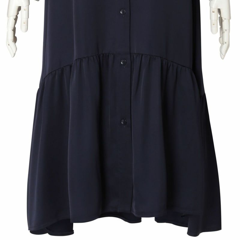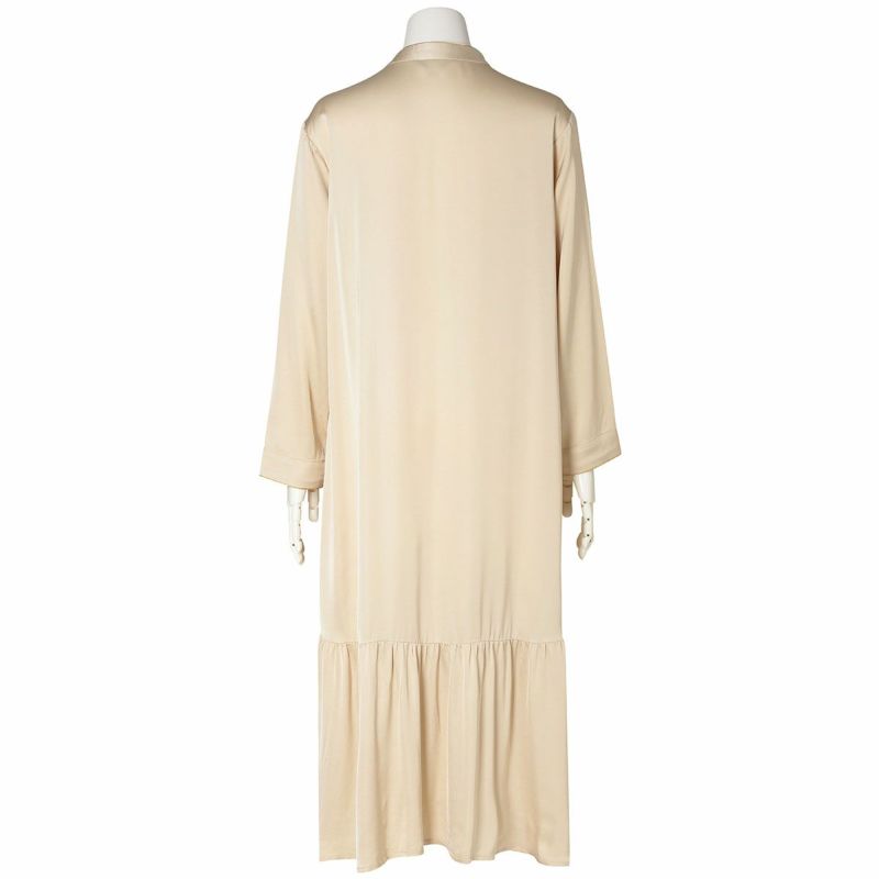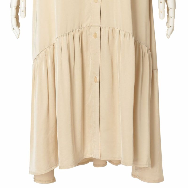 流れるような落ち感が美しく、前後差のあるティアードの裾が上品なシルエットのナイティ。たっぷり入れたギャザーでフェミニンに。パイピングもポイントです。