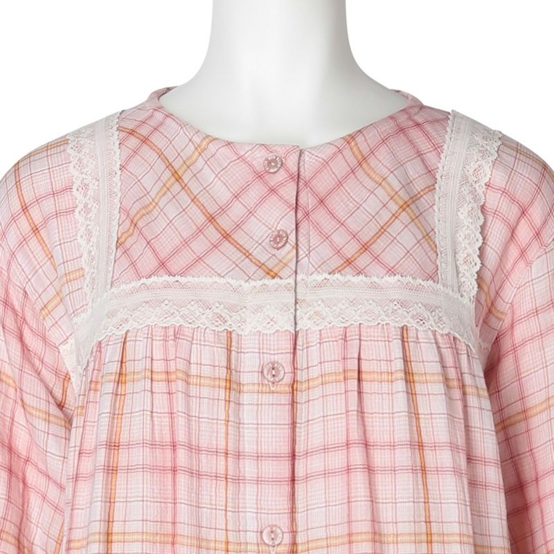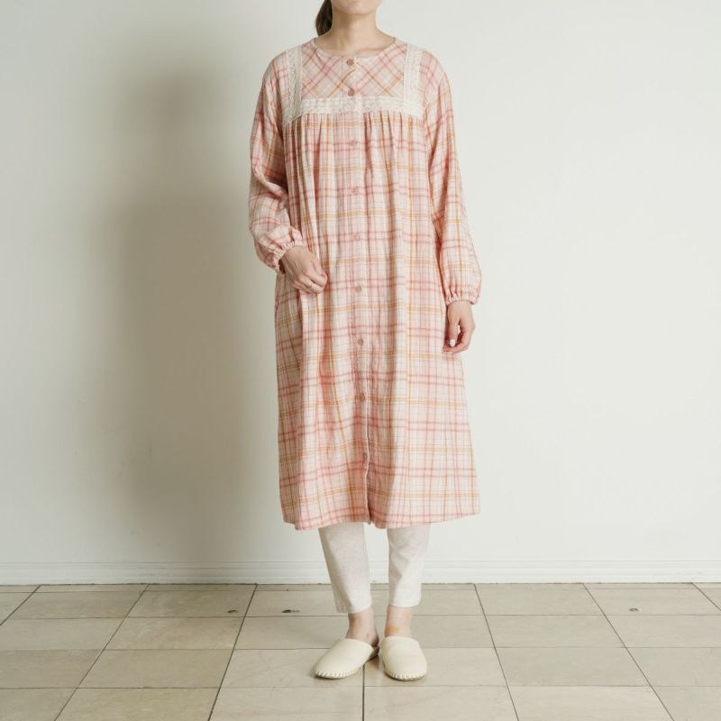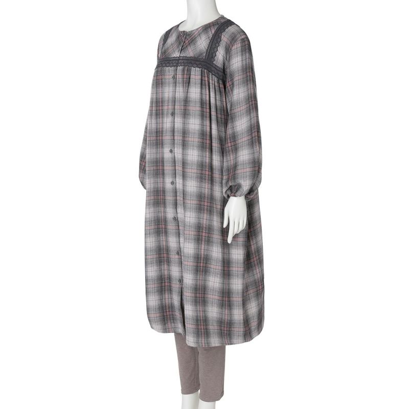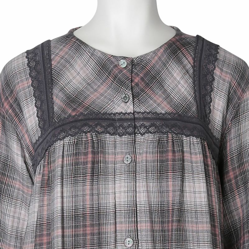 美しく表情を変えるオンブレーチェックに、雰囲気に寄り添う繊細なレースをあしらったナイティ。