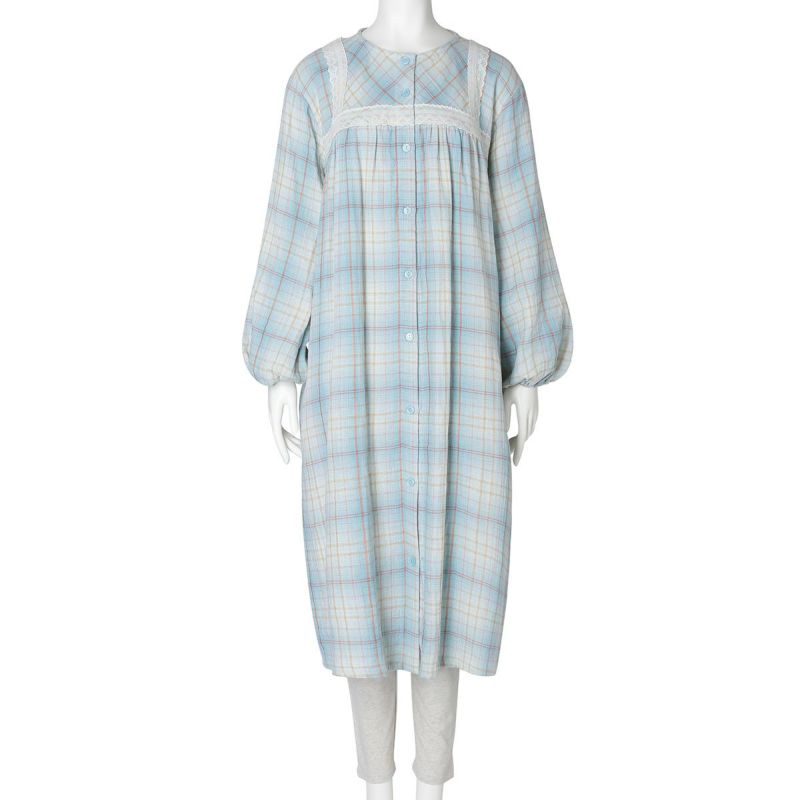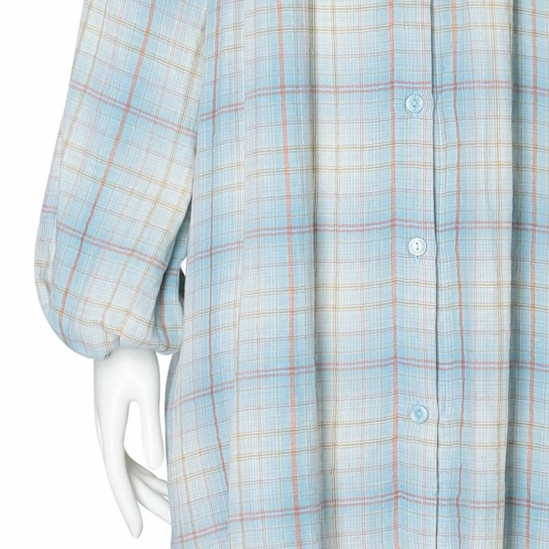 空気を含んだ3重構造のガーゼでふんわり柔らかやさしい着心地。肌側には無撚糸を使用しさらに肌触りをよく仕上げました。品よく新鮮な印象のオリジナルチェック柄で、リラックスタイムにぴったりです。