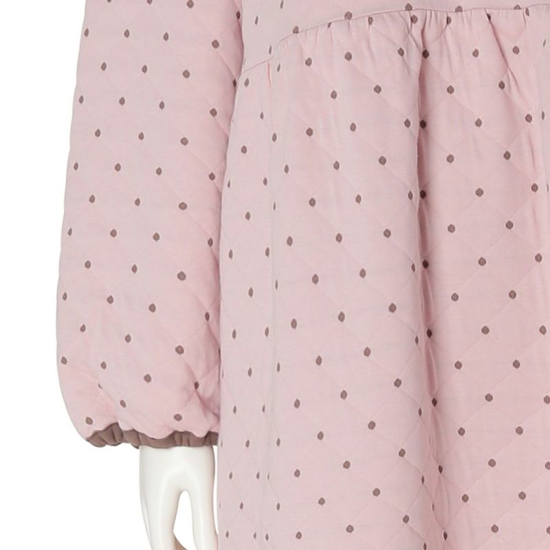 綿ならではのやさしい肌ざわりが心地よい、キルトジャカードのシリーズ。綿と綿の間にポリエステルの中わたをはさんだ三層からなる暖かく軽やかな素材です。ドット柄が上品なかわいらしさを添えます。