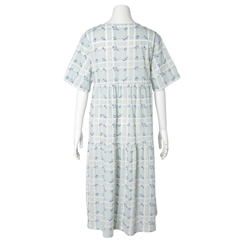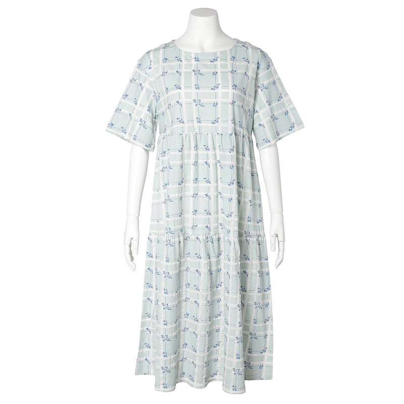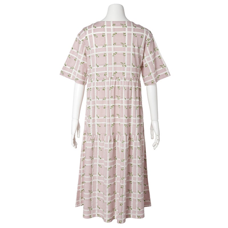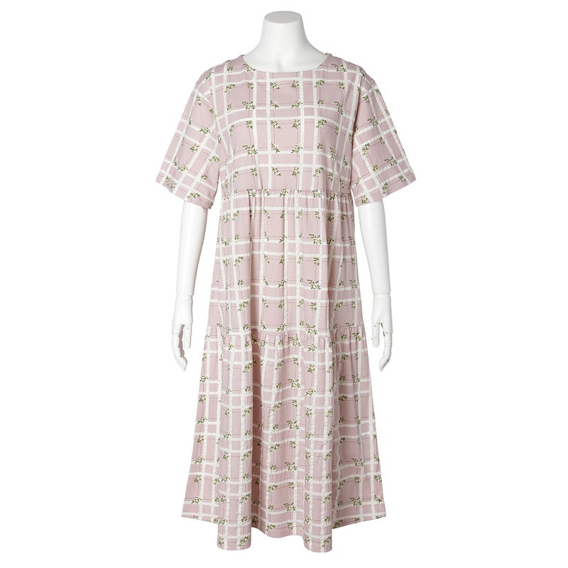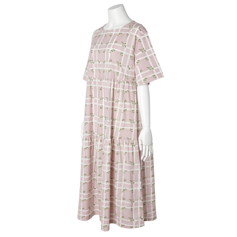 ティアードデザインがフェミニンな5分袖ナイティ。さりげなく体型カバーしながら心地よく。フレアスリーブが涼やか。