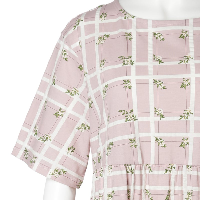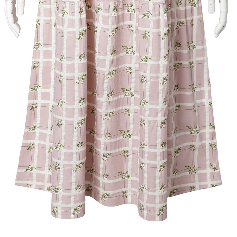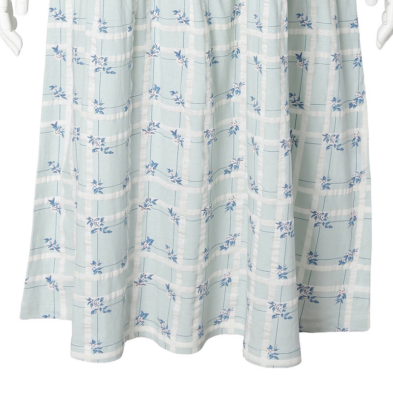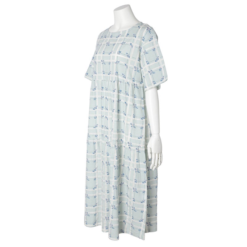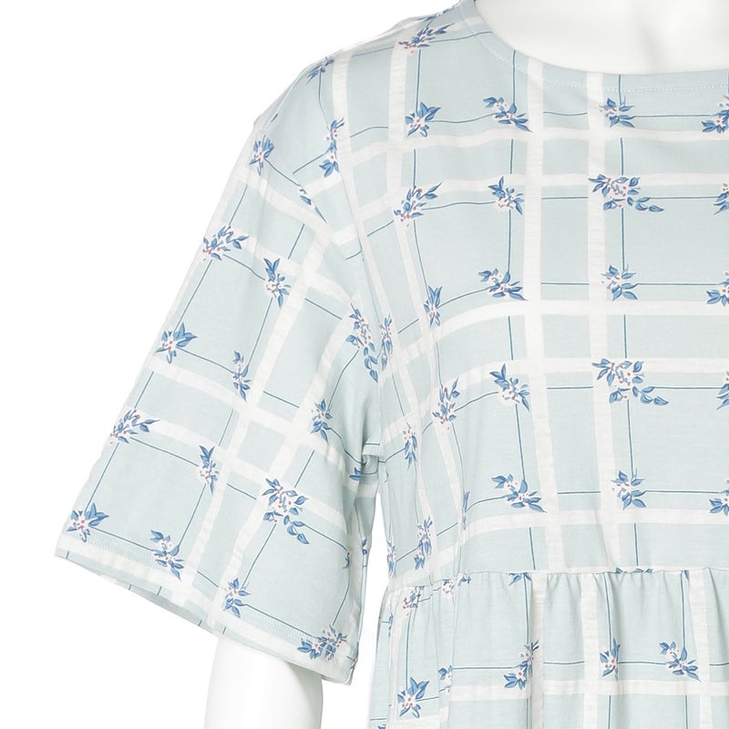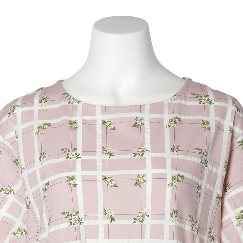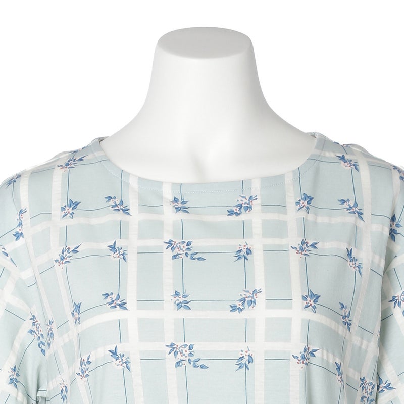 過去に人気のあったチェックに花を散りばめた「フラワーチェック」柄が待望の復刻。今シーズンは優しく馴染む落ち着いたパステルトーンにアップデート。表面に繊細な凹凸を施す塩縮加工をほどこしたリップル素材。さらっとしてシャリ感のあるSZ天竺で肌へまとわりつきにくく、汗ばむ季節も爽やかに過ごせます。