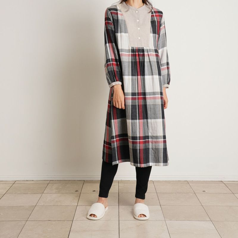 トリプルガーゼブランケットチェック[長袖ナイティ]