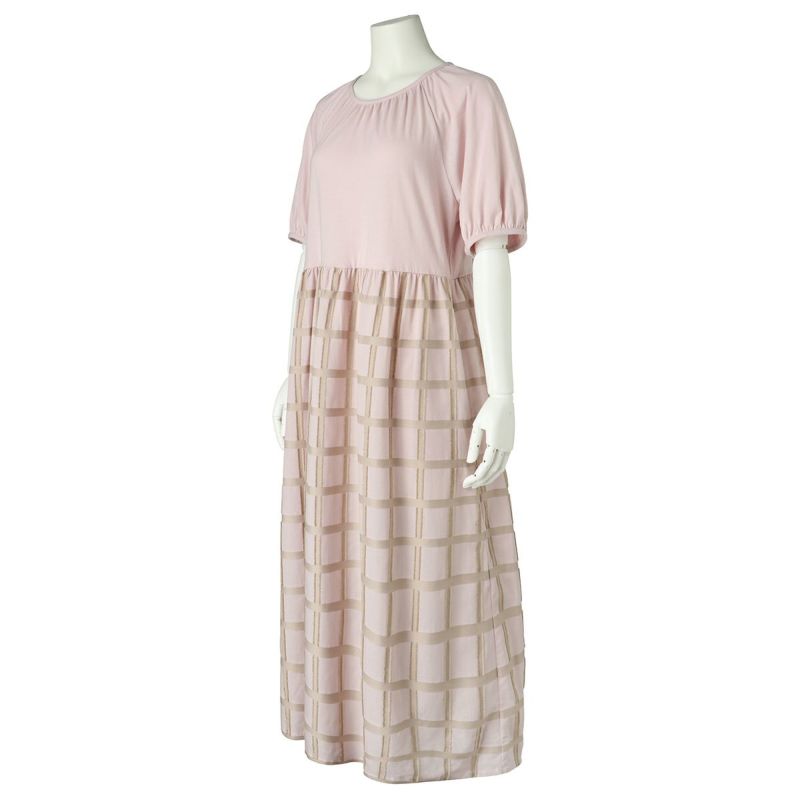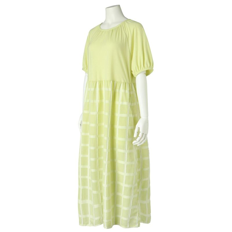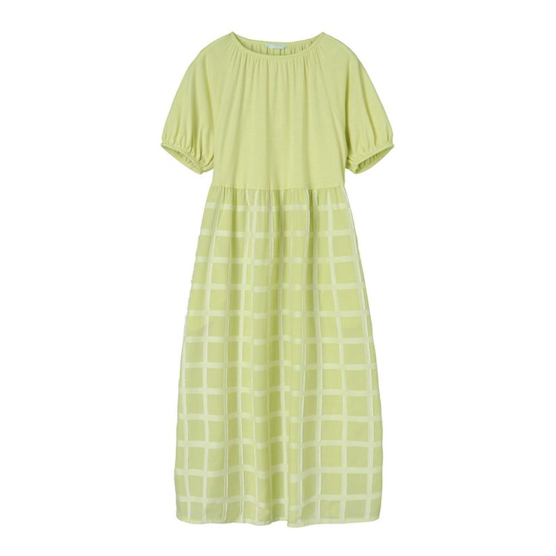 上身頃に綿天竺を組み合わせた半袖ナイティ。ラグランスリーブで着やすさ◎チェックのカジュアル感をパフスリーブでさりげなく華やかに。スカート部分はギャザーを寄せた分量感のあるデザイン。お部屋着としても着用できる1枚。ポケット付き。