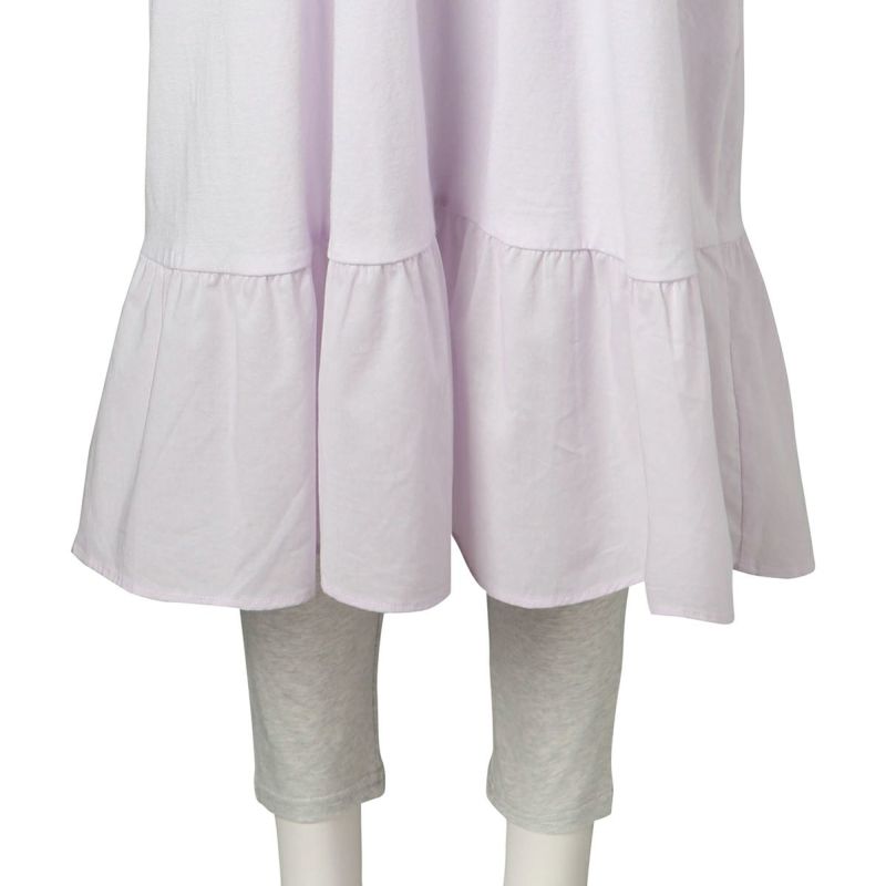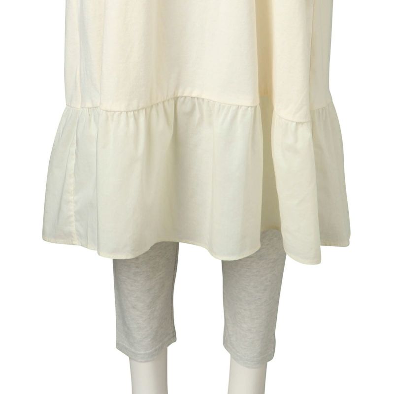 トップ: 着丈105cm 身幅(1/2)54.4cm 袖丈60.6cm(フリル含む) ボトム(スパッツ): 着丈94cm ウエスト(1/2)33.5cm ヒップ(1/2)37cm 股下66.8cm