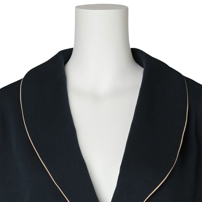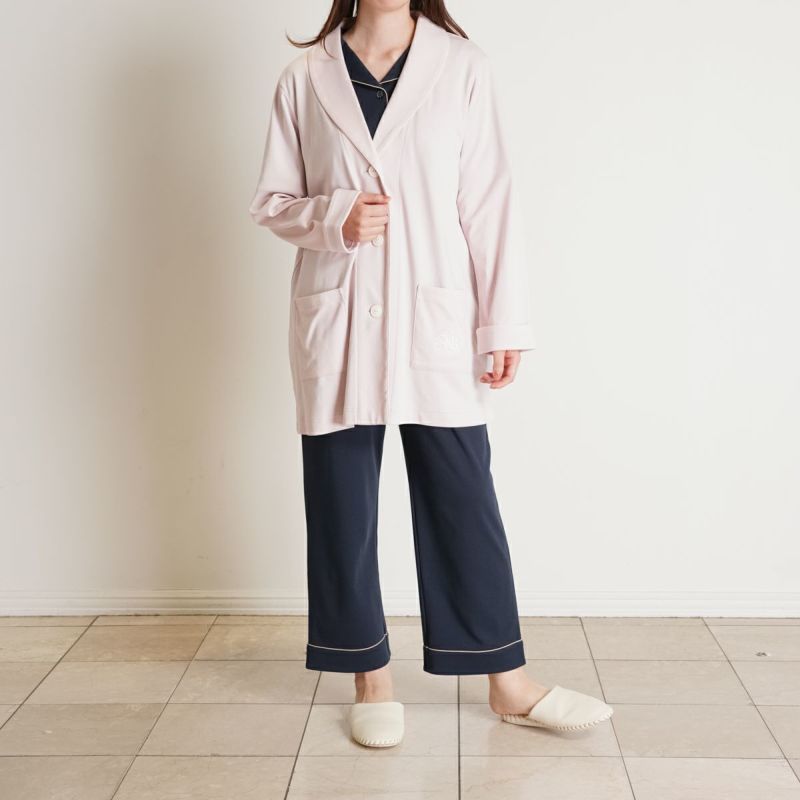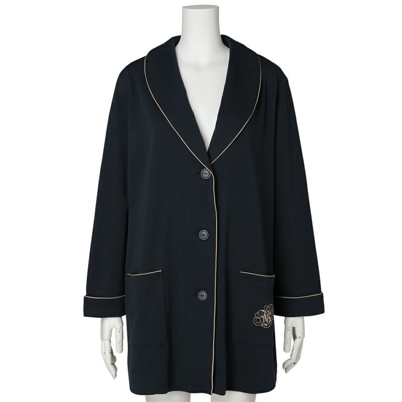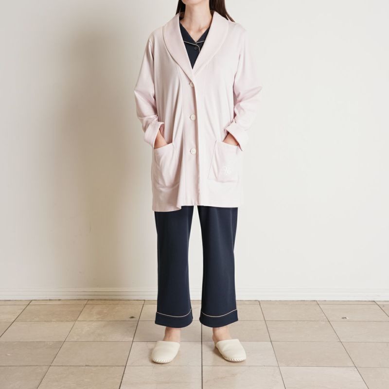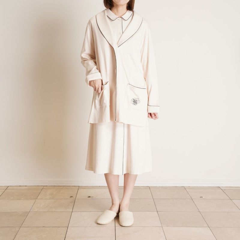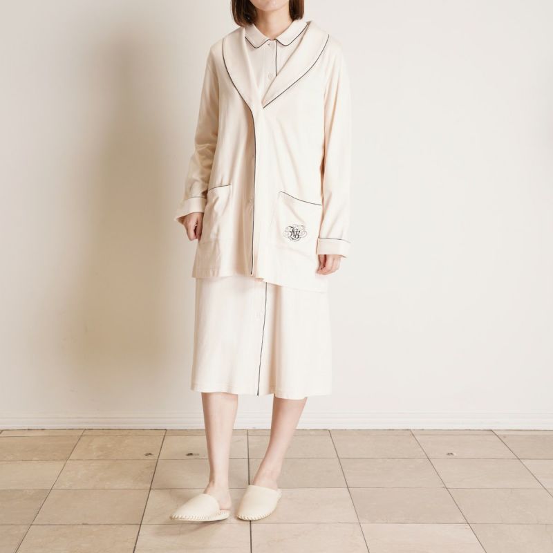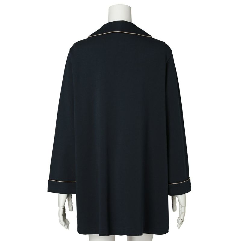 長袖ガウンは、上品な見え感のショールカラーデザイン。コットン100%の優しい肌あたりが特徴です。お尻まで隠れる丈感で、羽織りとしてお部屋着にもおすすめ◎