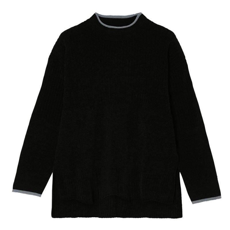 ゆったりしたサイズ感で体に馴染み快適に着られるトップス。襟は少し高さのあるモックネックタイプ。