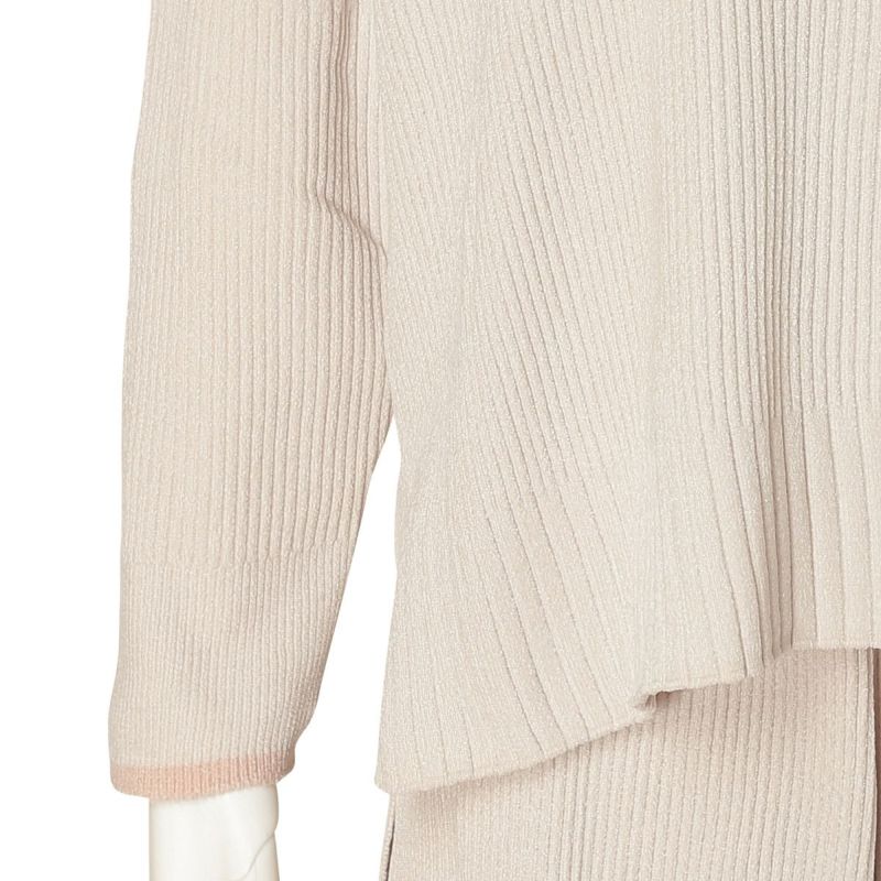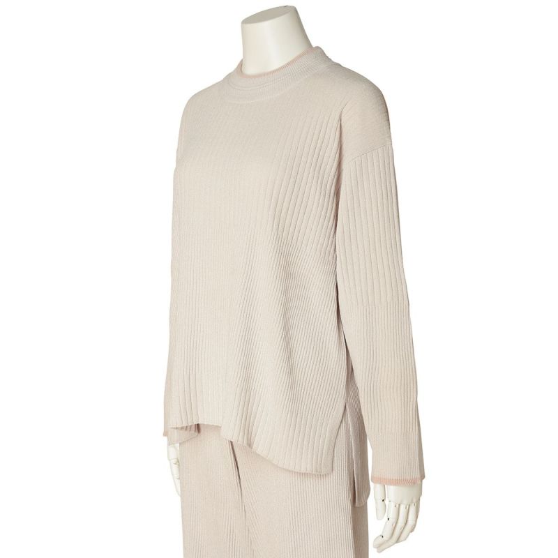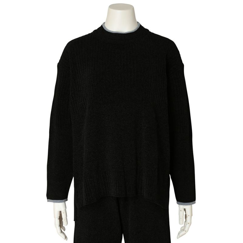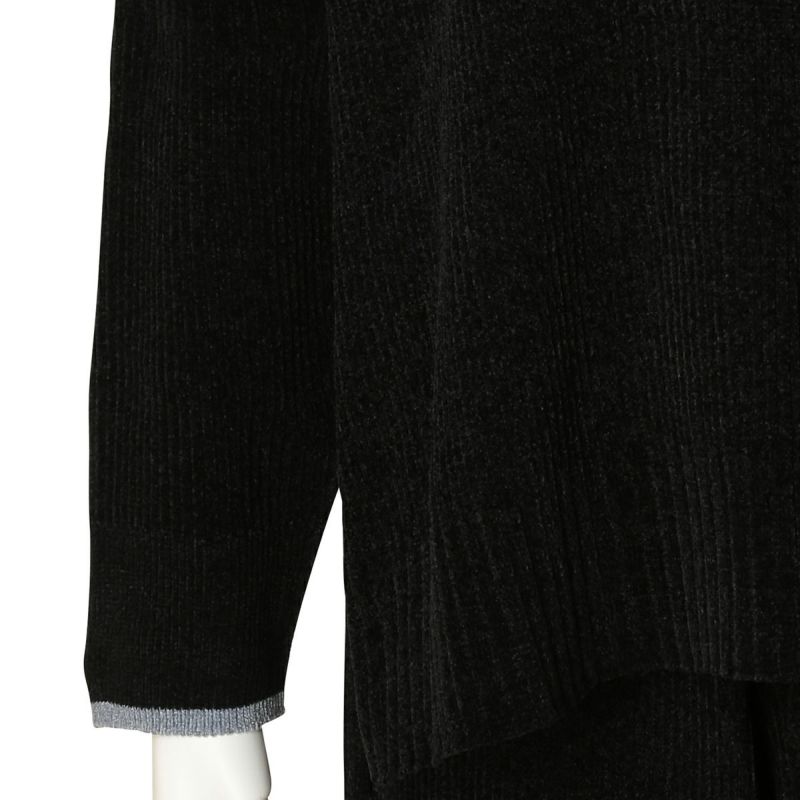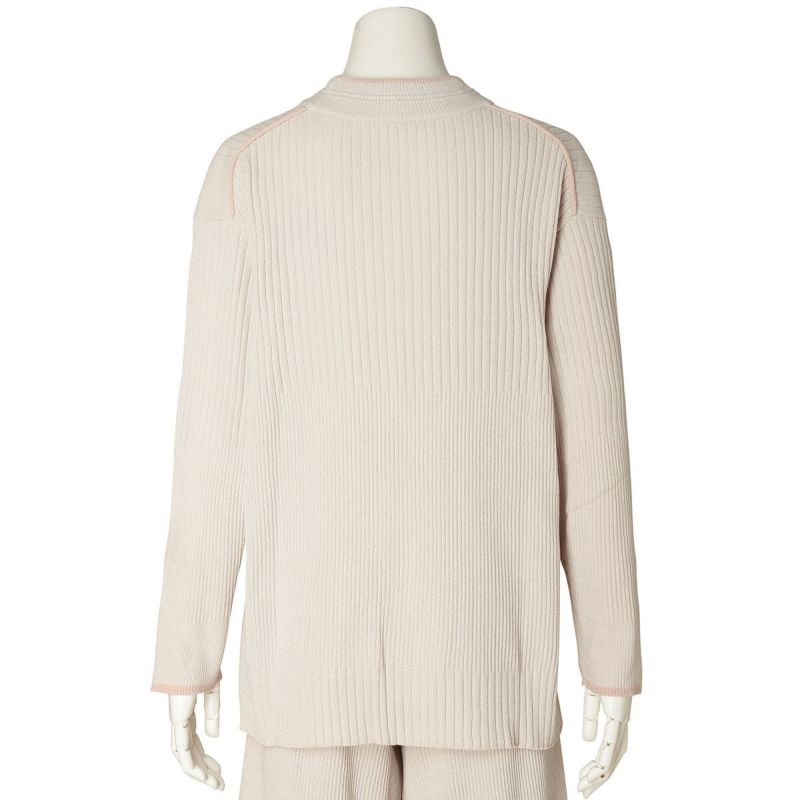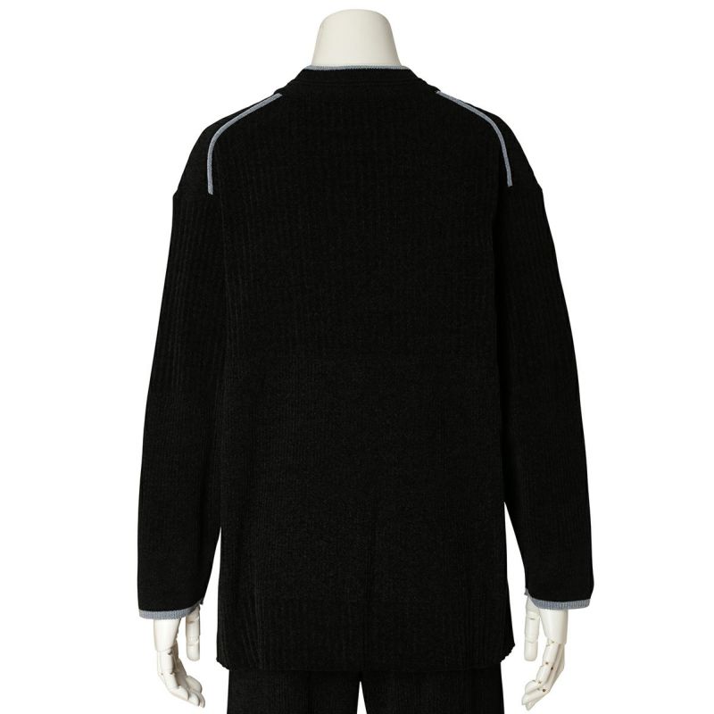昨年好評だったリブニットシリーズがカラーを新たに登場。ベロアのような肌触りの、毛足の短いモールヤーンは見た目以上に軽い着心地とアウターライクに着用できます。様々なリブの編地を組み合わせ高級感とトレンド感のあるシルエット。大人にぴったりのさりげない配色のラインをアクセントにしました。ポリエステルならではの手入れのしやすさもポイント。