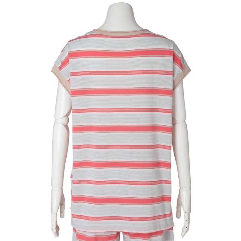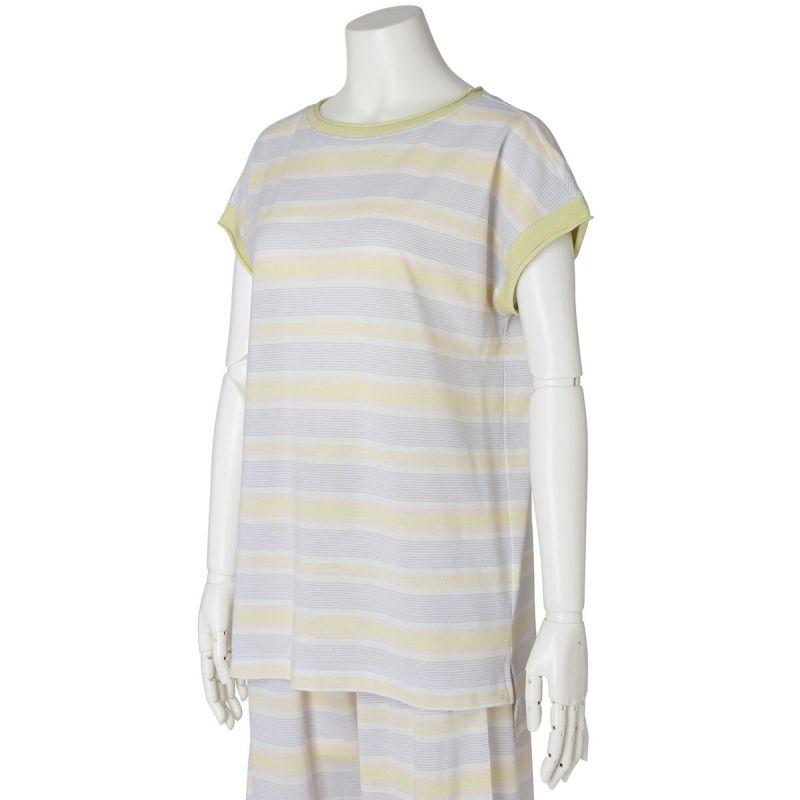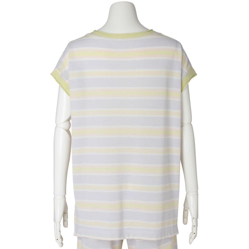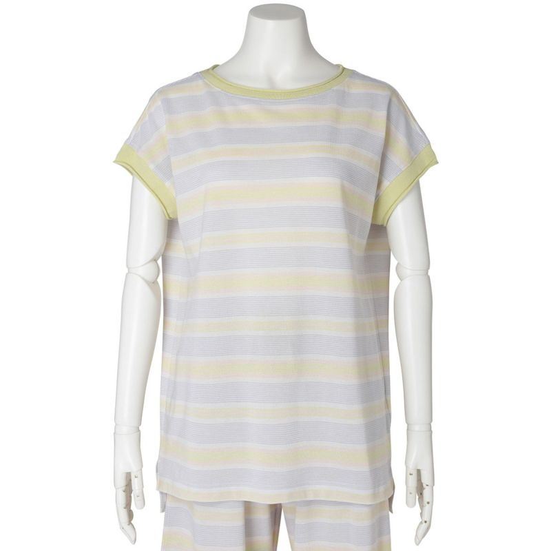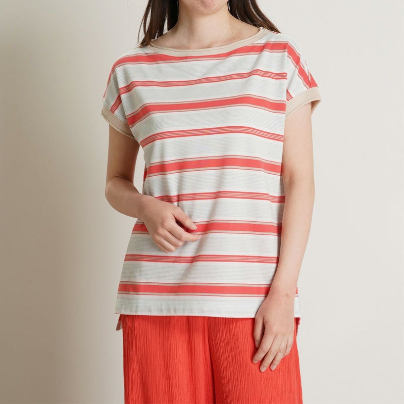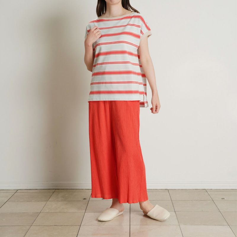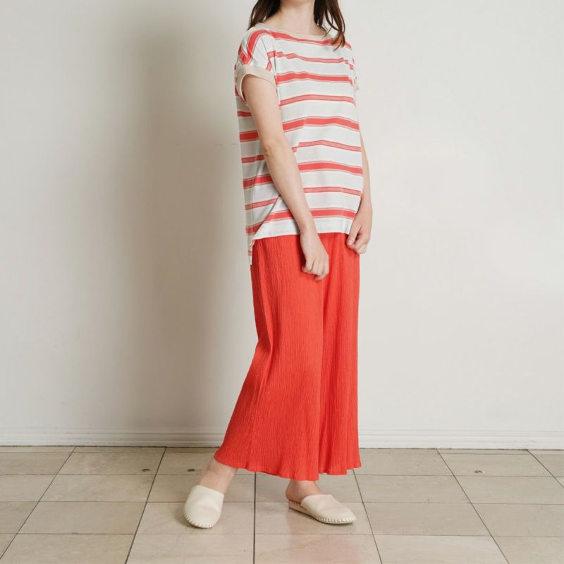 半袖トップスは、首元や袖のロールがこなれた印象のボートネック。ゆったりした身頃から続く袖で、袖付けの縫い目をなくしなるべく涼しく快適に着用できるようこだわりました。前後差を出しシンプルで楽な着心地ながらも洗練された印象に。同シリーズのボトムスと合わせてセットアップもおすすめです。