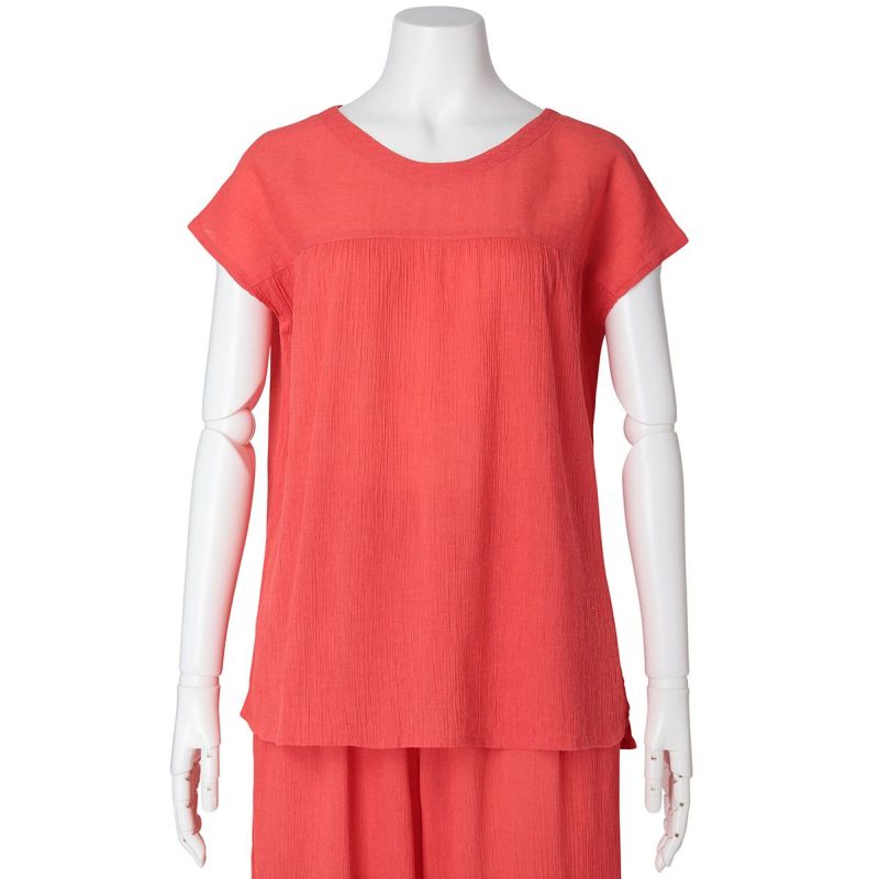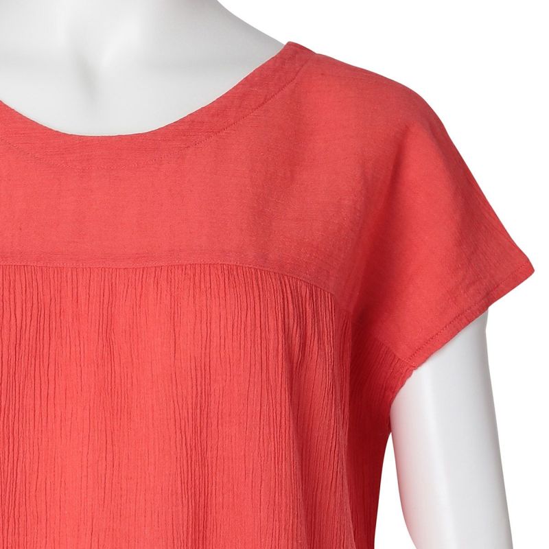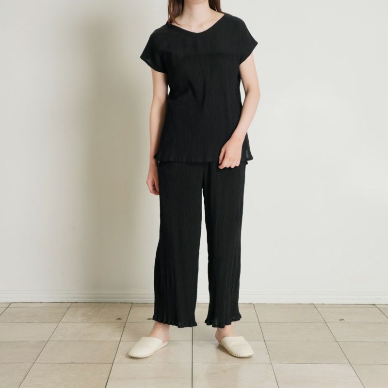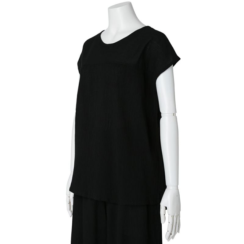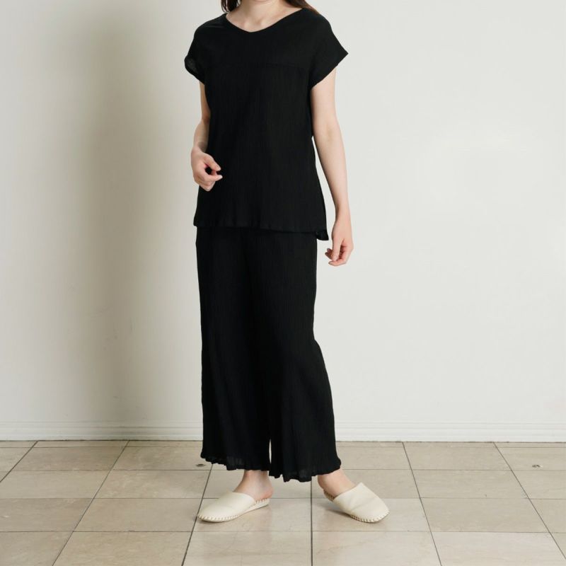 - 身長:158cm / 普段サイズ: M 薄手で軽くて、お部屋着だけではもったいなく、普段のお洋服として使っています。高島ちぢみのさらりとした肌触りはこの暑さを乗り切るのに必須!アームホールが空きすぎていないのも普段使いできるポイントです◎
