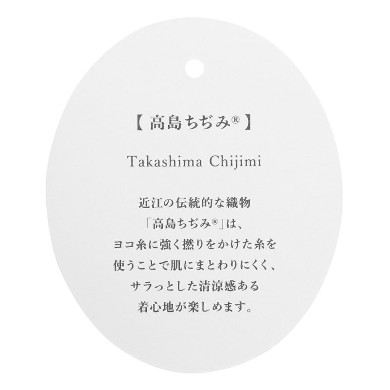伝統織物「高島ちぢみ」を使用した、夏の暑さを快適に過ごすためのシリーズ。独特の凹凸により肌に触れる面積が少ない為、べたつきにくく清涼感のあるさらっとした着心地。