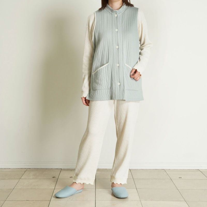 季節の人気素材、コットン100%を使用した薄手キルトシリーズ。肌にやさしく安心感のある着心地で、毎日気軽に楽しめます。ほどよい厚みのキルト仕立ては、軽やかでありながらもあたたかく、季節の変わり目や薄手防寒にぴったり。