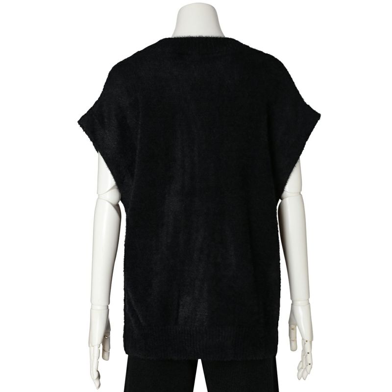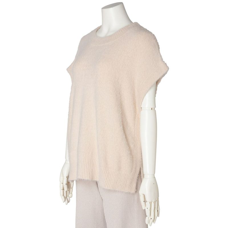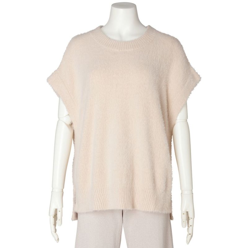 ゆったりしたデザインのニットベスト。ナイトウエアに重ねたり、ワンマイルとしても様々なスタイリングが楽しめます。