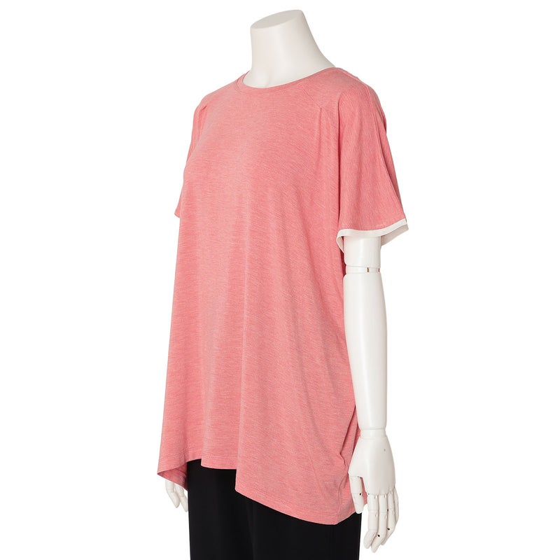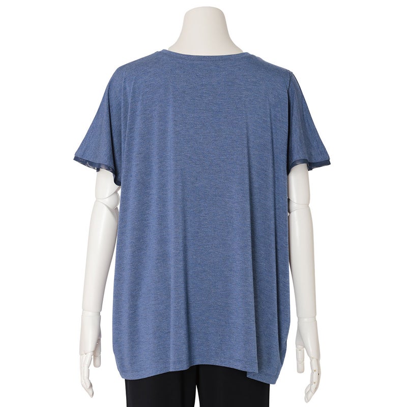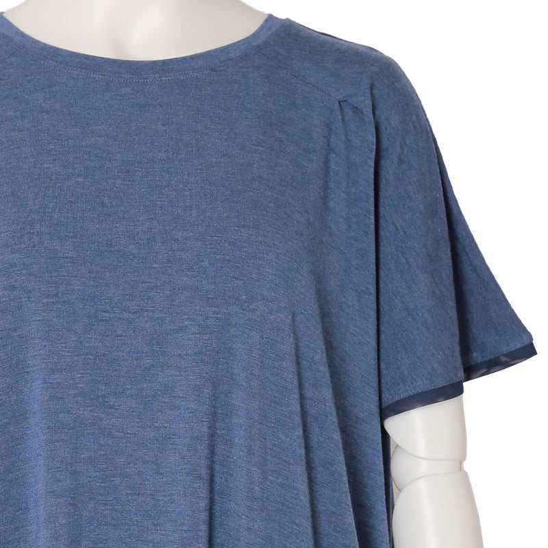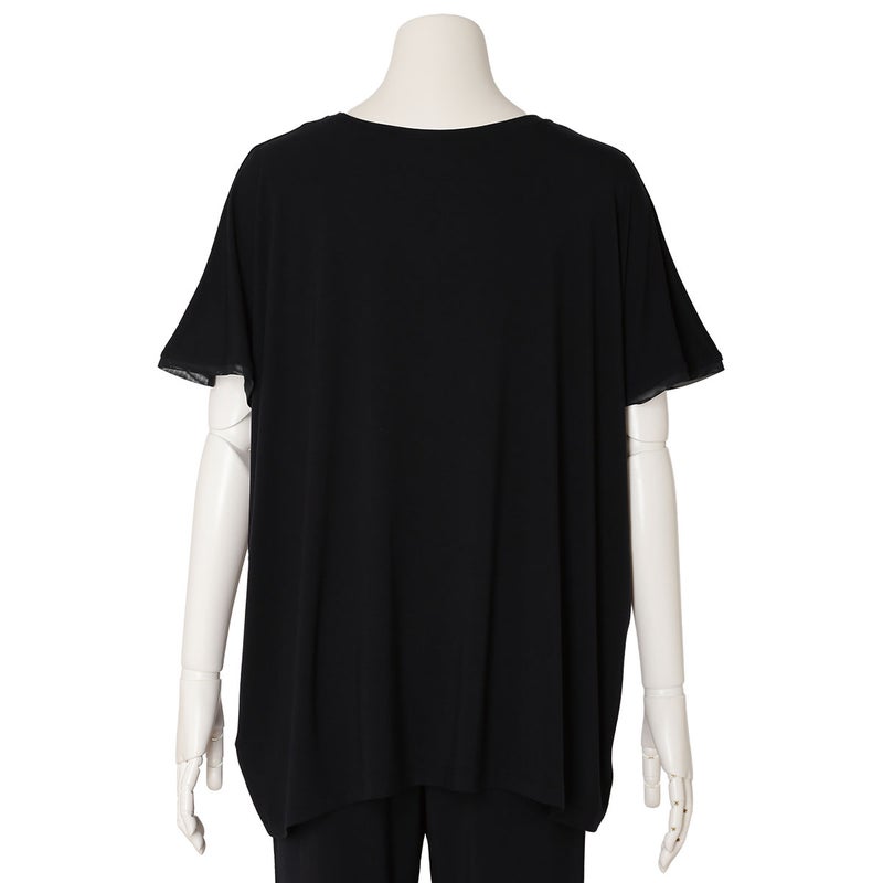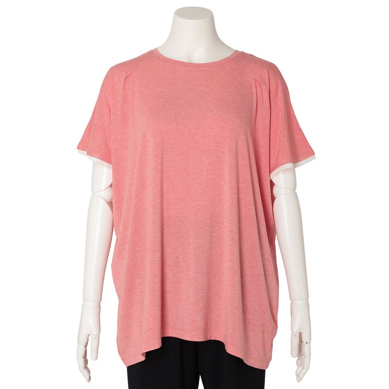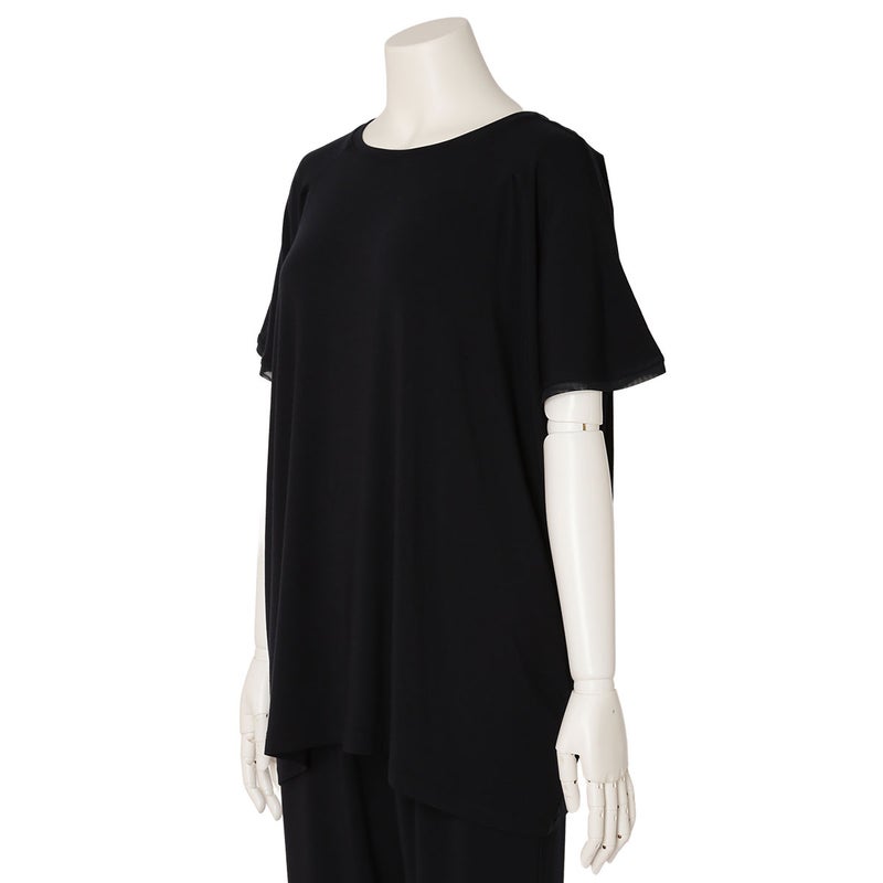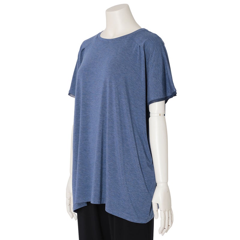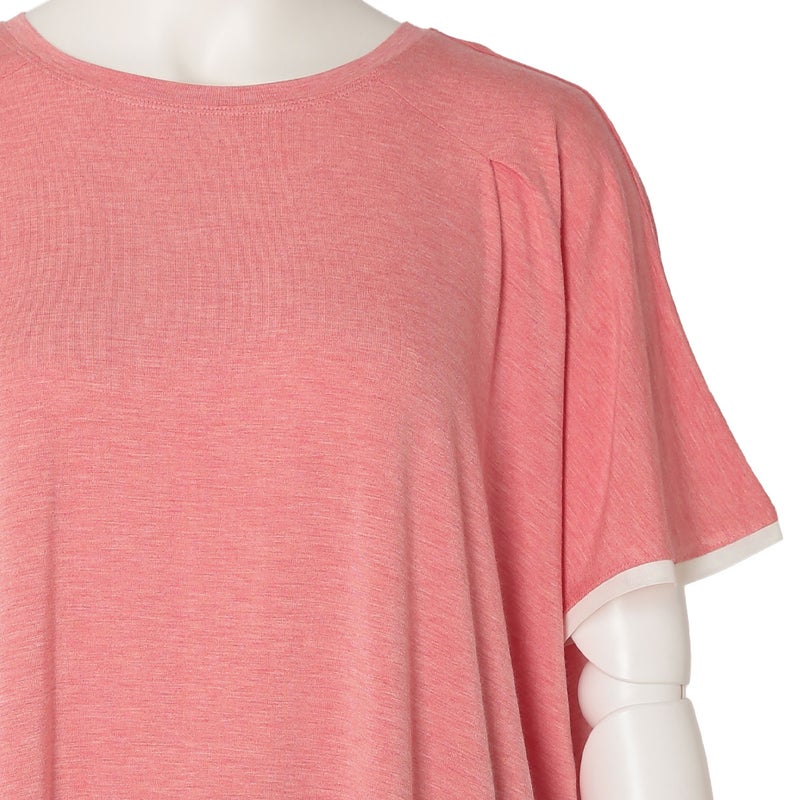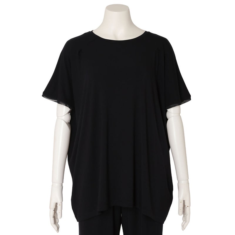ニューアイテムの半袖トップス。ゆったりとしたリラックスシルエットながら落ち感のある質感で上品に。肩のタックや襟ぐり、裾、袖口に組み合わせたパワーネットがポイントです。同素材のボトムス(KRCP513/KRCP613)とのコーディネートがおすすめです。