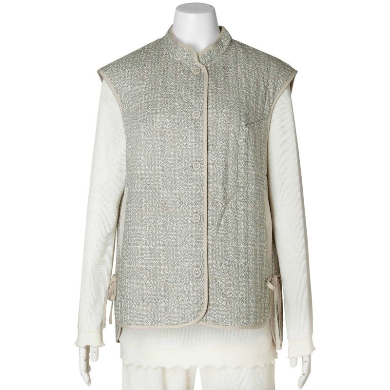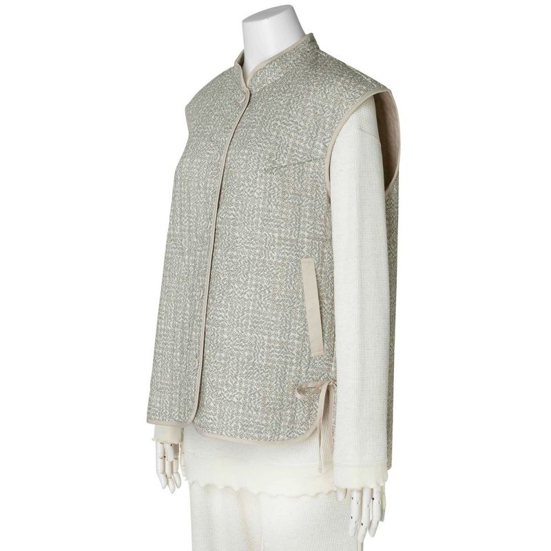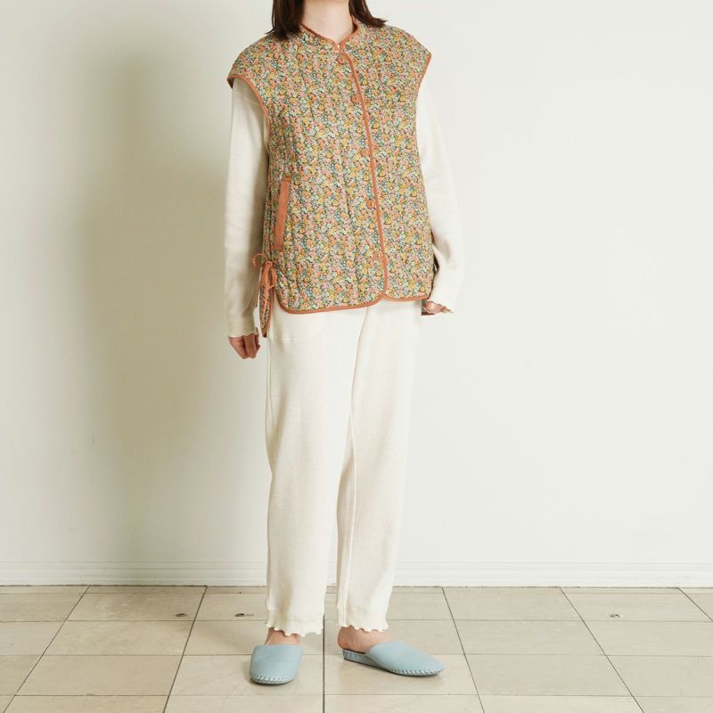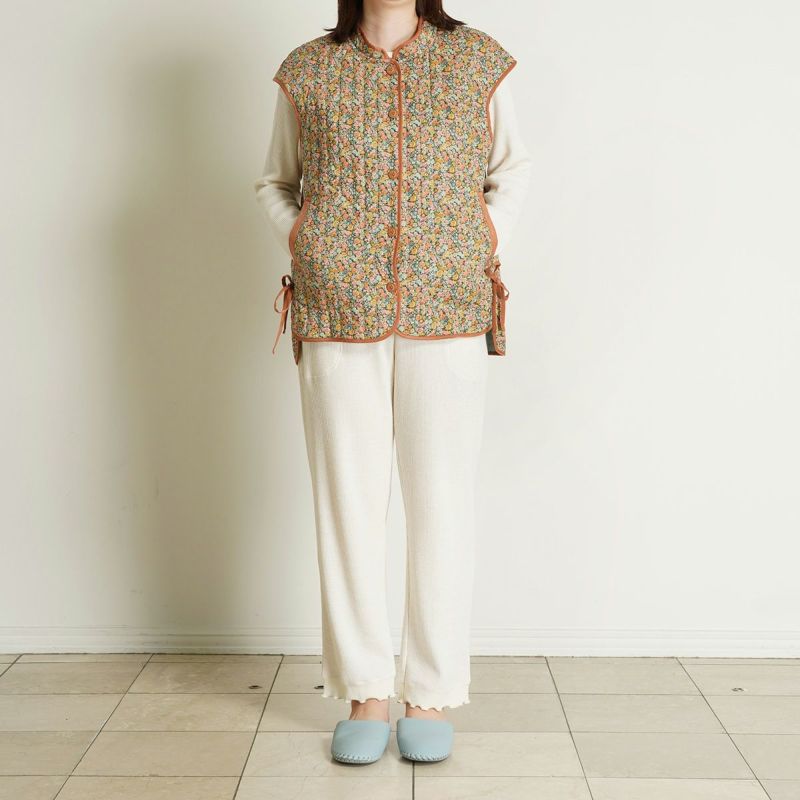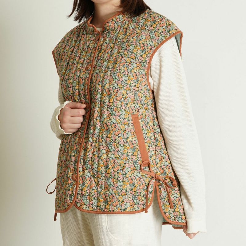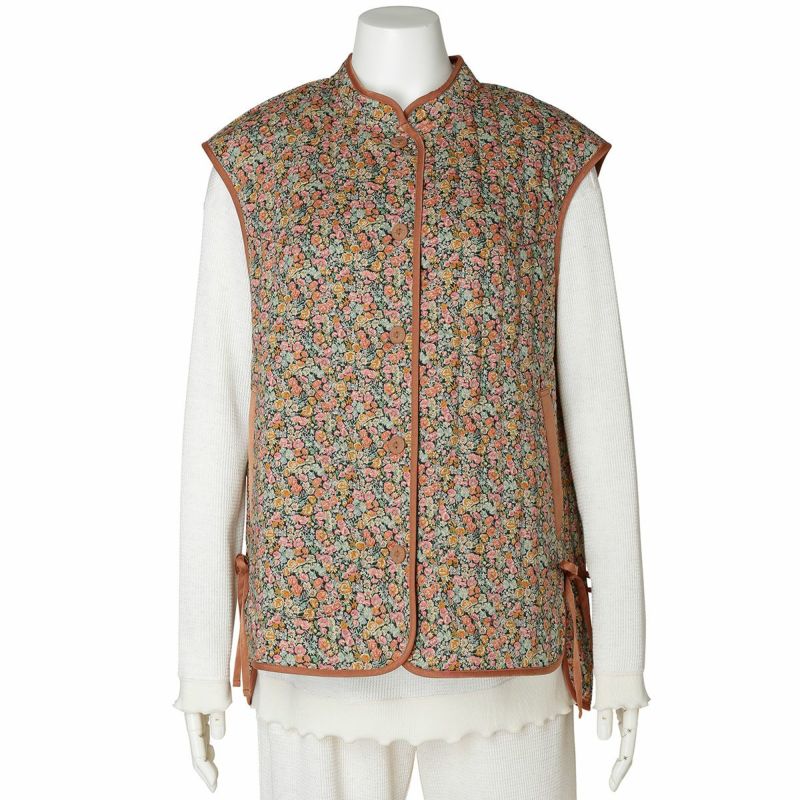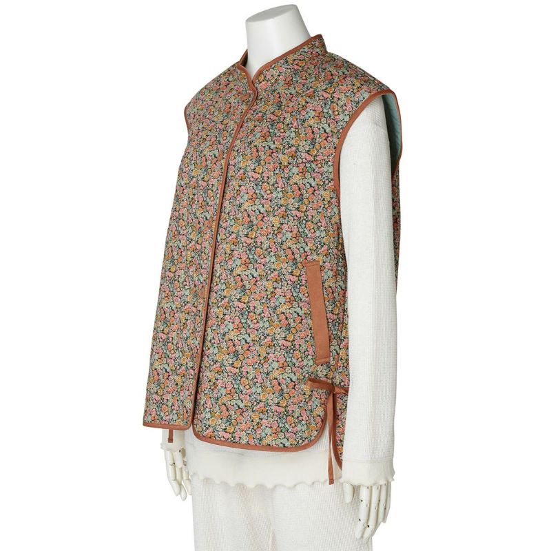 細部までこだわったディティールが魅力のフレンチスリーブキルティングベスト。縁にはパイピングを施し、仕立ての美しさを際立たせました。サイドにはリボンをあしらい、さりげないアクセントに。肩先までカバーするフレンチスリーブで使いやすく、重ね着しやすいのも嬉しいポイントです。