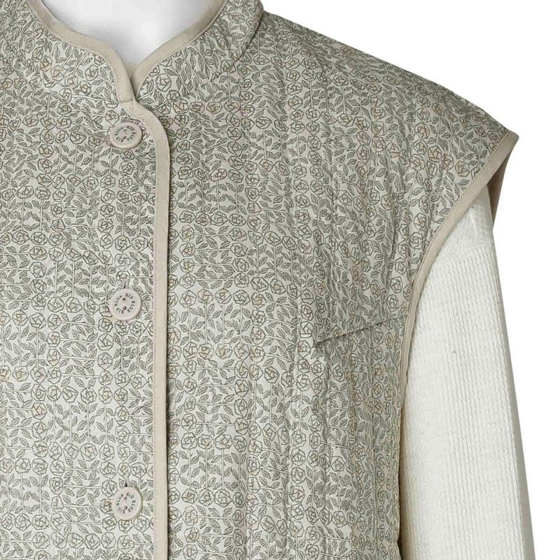 リバティ社が開発したコットン100%のタナローン地をキルト加工にした珍しい仕立てのトップスシリーズ。キルト部分はストライプ状にジグザグステッチを施し細部までこだわりました。ステッチがさりげないアクセントになった特別な一着です。
