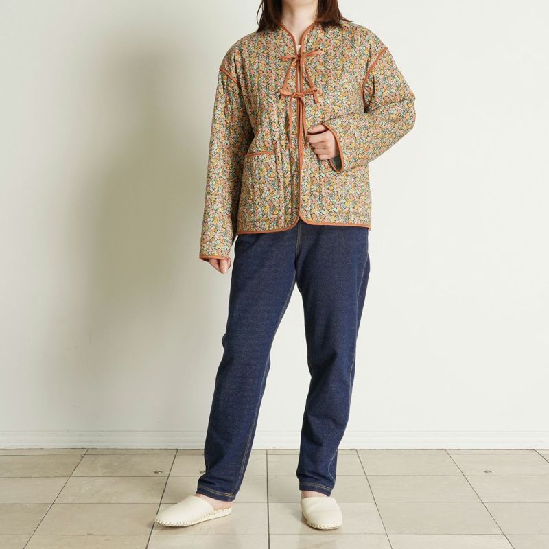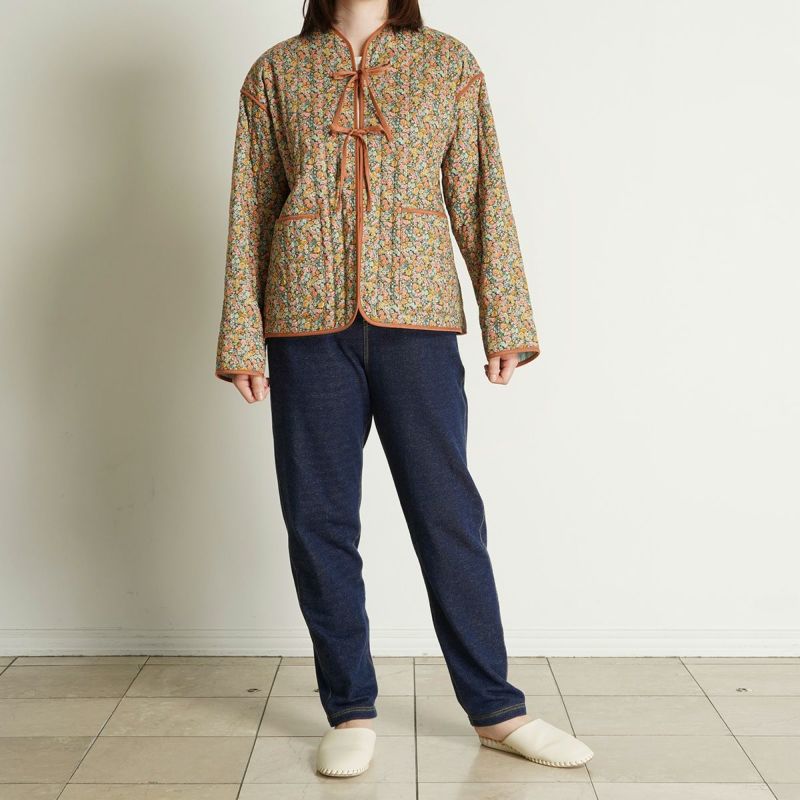 リバティ社が開発したコットン100%のタナローン地をキルト加工にした珍しい仕立てのトップスシリーズ。キルト部分はストライプ状にジグザグステッチを施し細部までこだわりました。ステッチがさりげないアクセントになった特別な一着です。