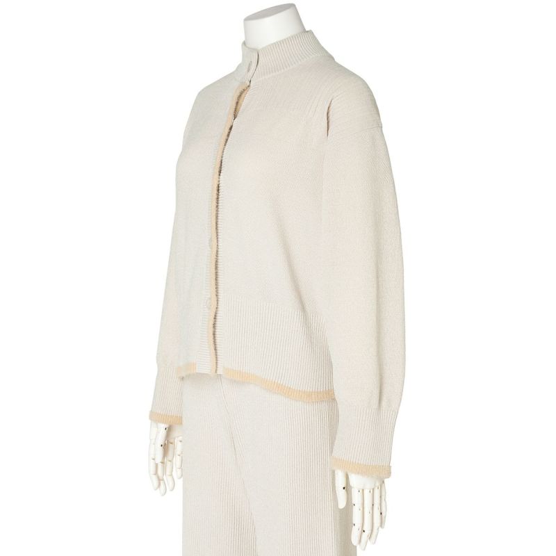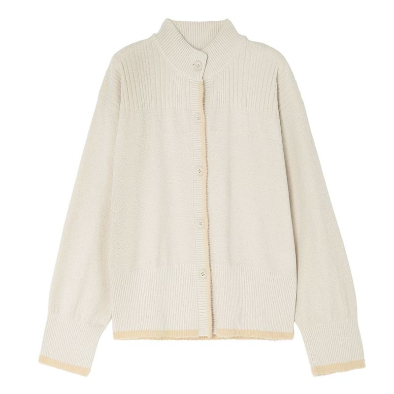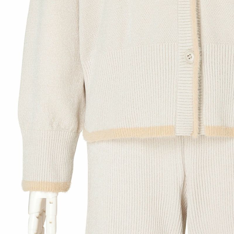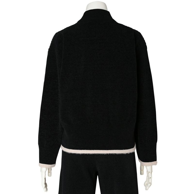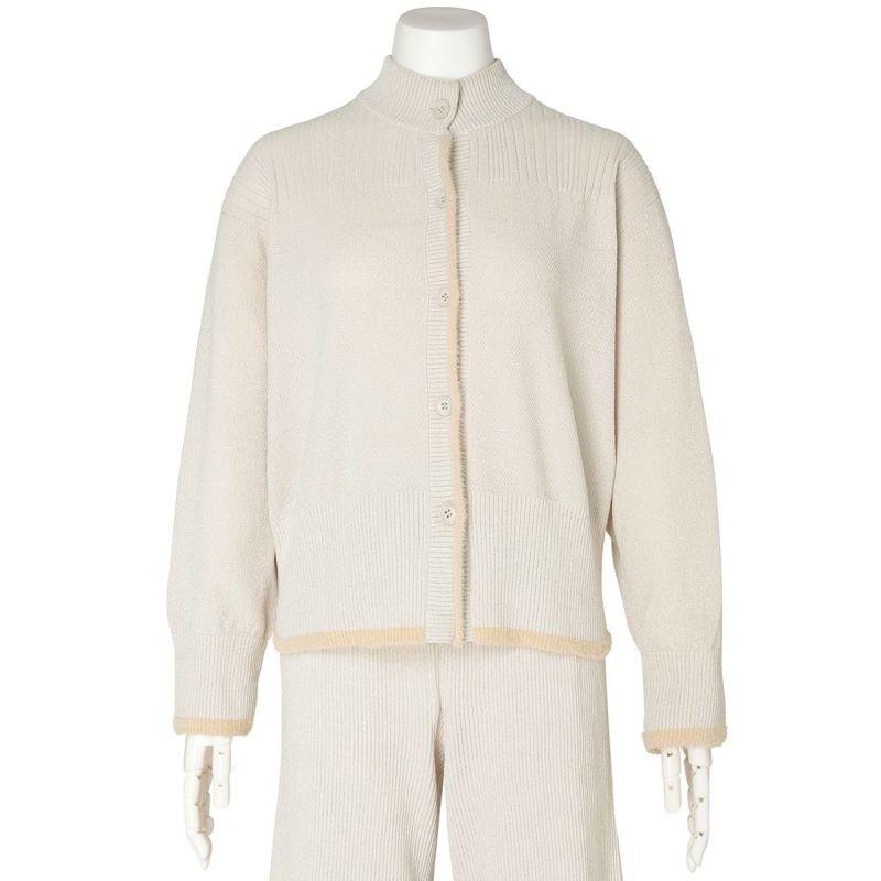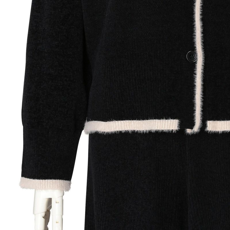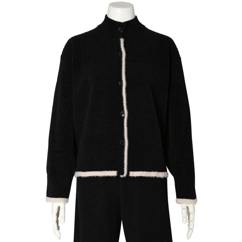 ドロップショルーダーでリラックス感のあるNEWアイテムのカーディガン。様々なリブの編地を組み合わせて表情豊かに仕上げました。襟や裾、袖口にはふわふわのシャギーを配色にし華やかに。