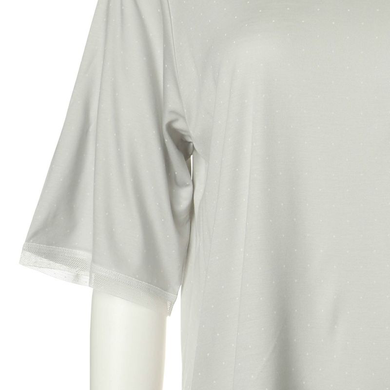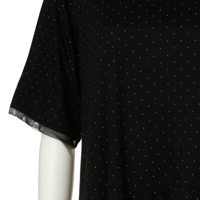 接触冷感のある夏におすすめのベンベルグ素材を使用。吸放湿性がありベタつきにくく蒸れにくい着用感。細かなドット柄と落ち感のあるシルエットがポイント。