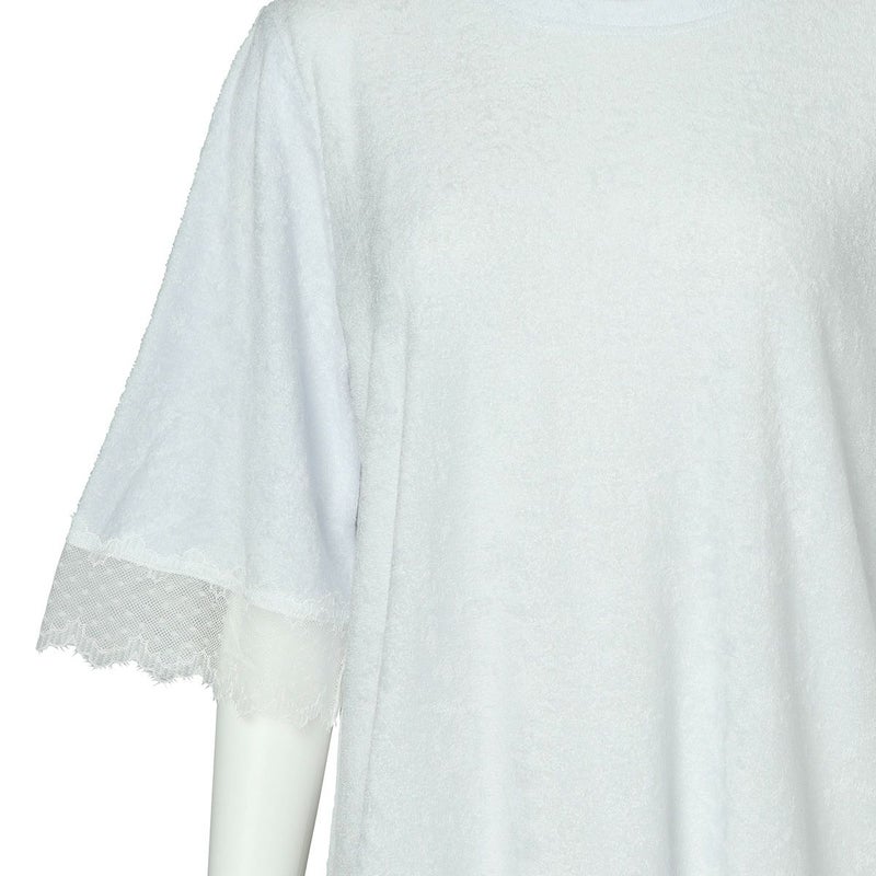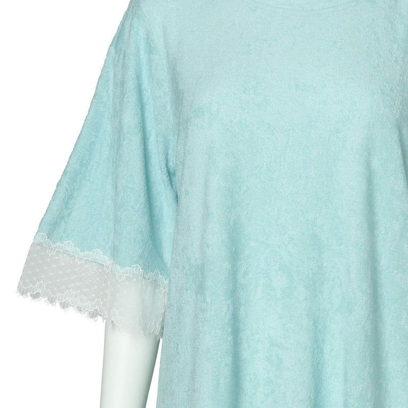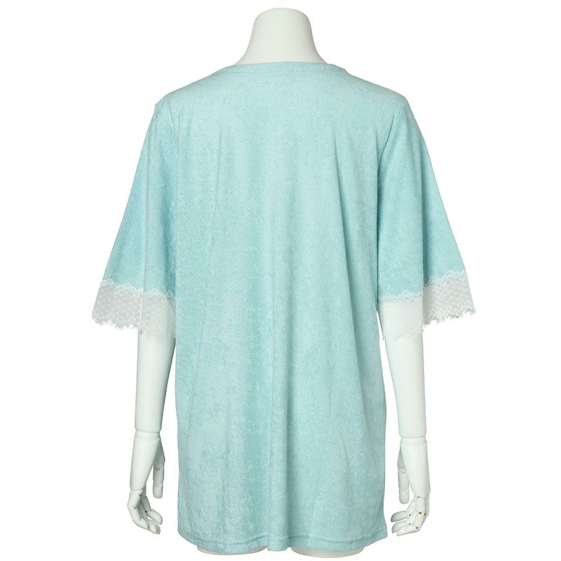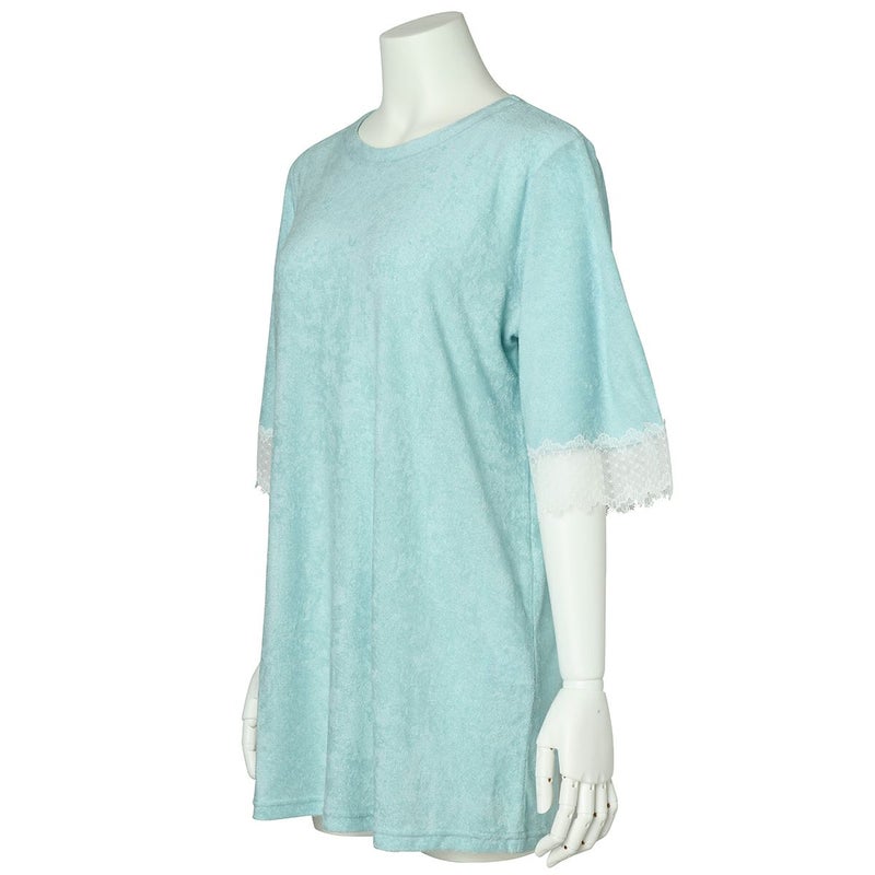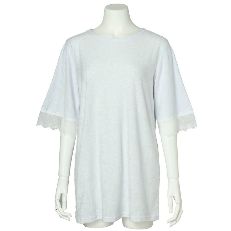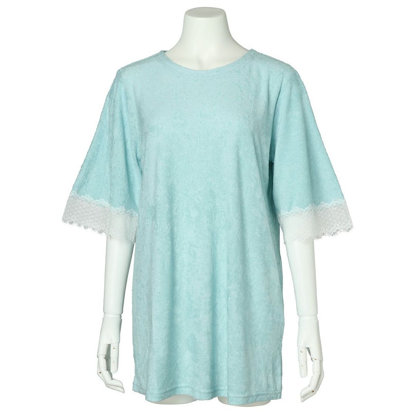 軽くて柔らかい夏向け薄手パイル素材を使用。配色のストレッチレースがデザインのポイント。