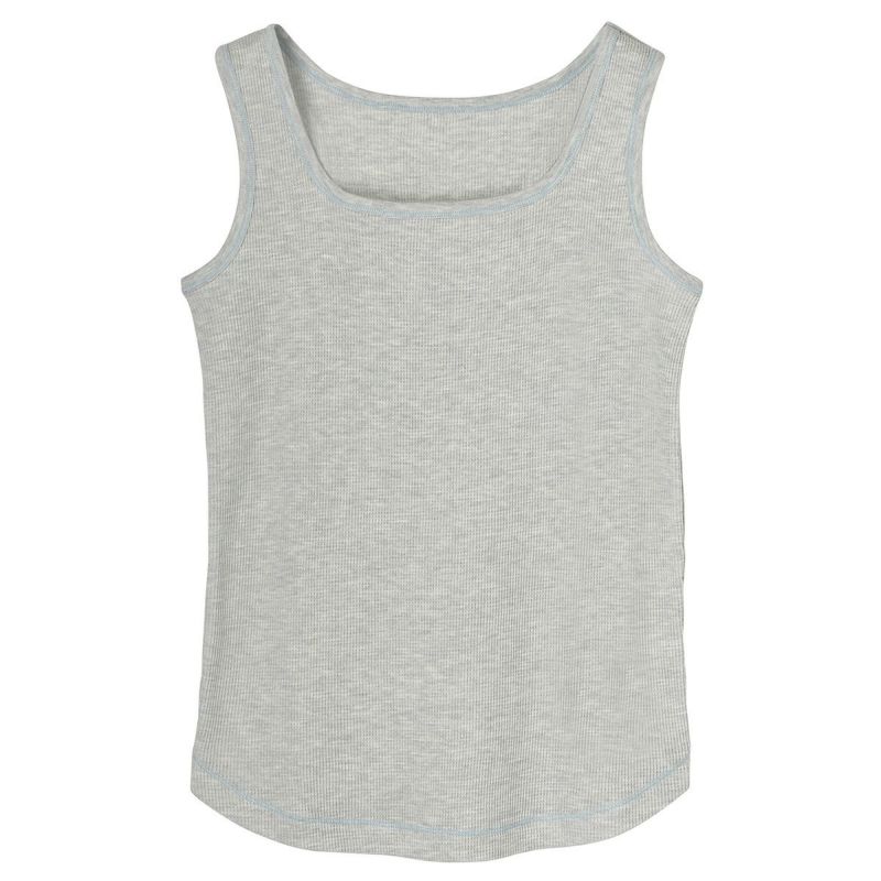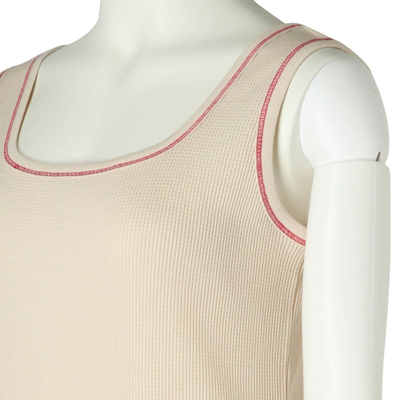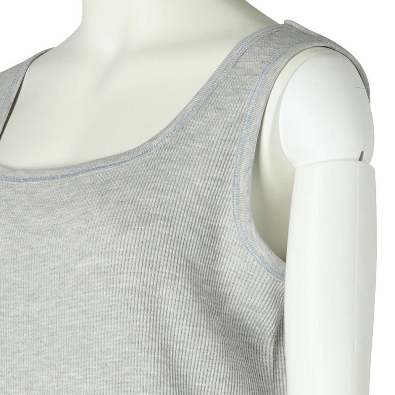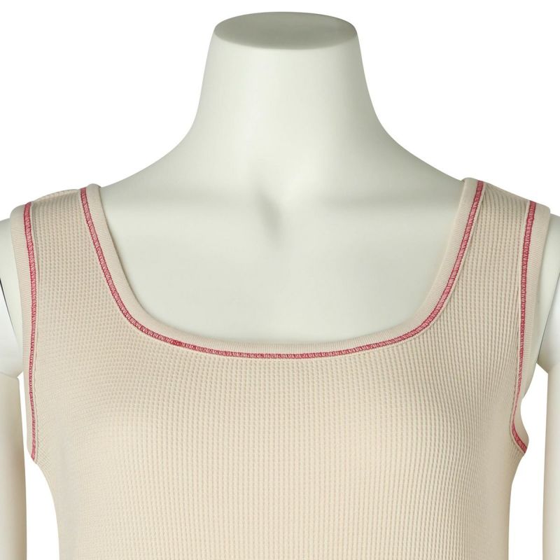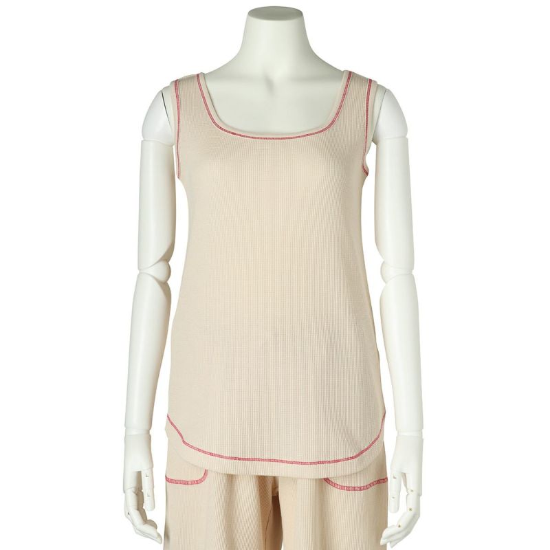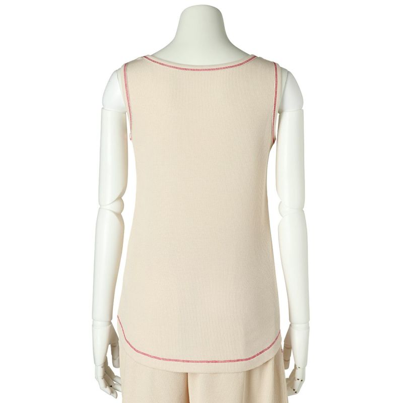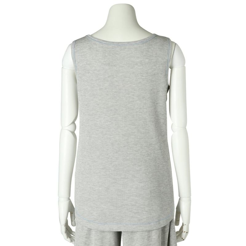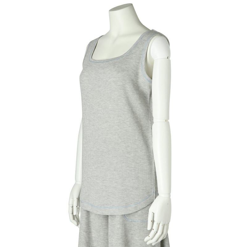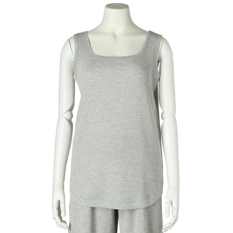 ノースリーブトップスは、体のラインにソフトに寄り添うシルエットで、デコルテを美しく見せるラウンドスクエアネックラインがデザインポイント。