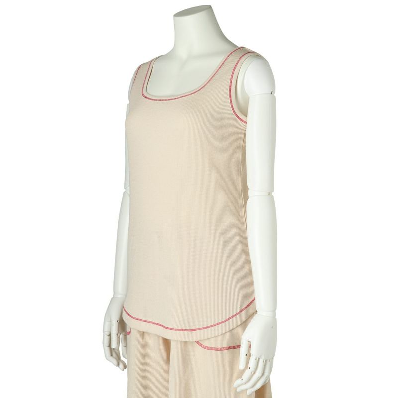 配色の振りステッチがデザインポイント。同素材の「ワッフルフラワーシャワー」とクロスコーデがおすすめ。