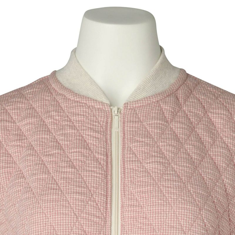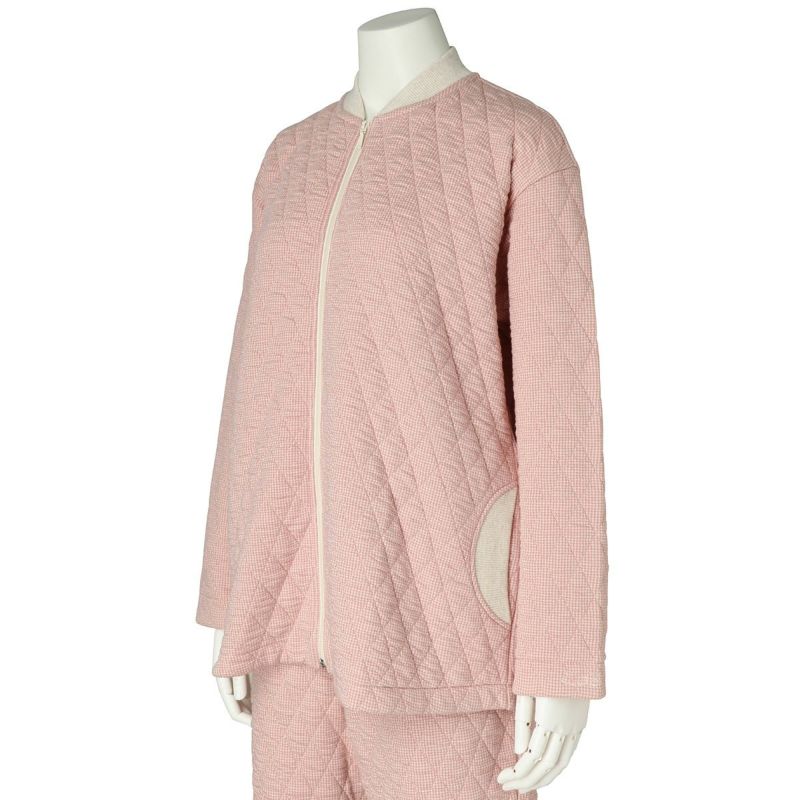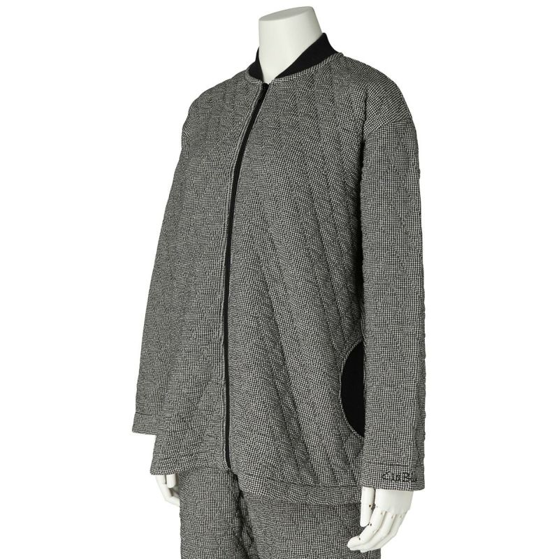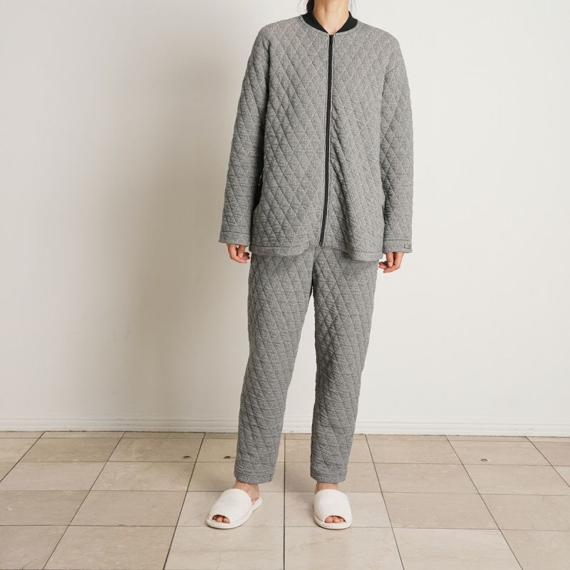 表面と裏面の糸混率を変えることで、通常のキルトより凹凸感を表現したキルトシリーズ。千鳥柄がポイントのルームウェア。「23裏毛裏起毛」とのクロスコーデがおすすめ。