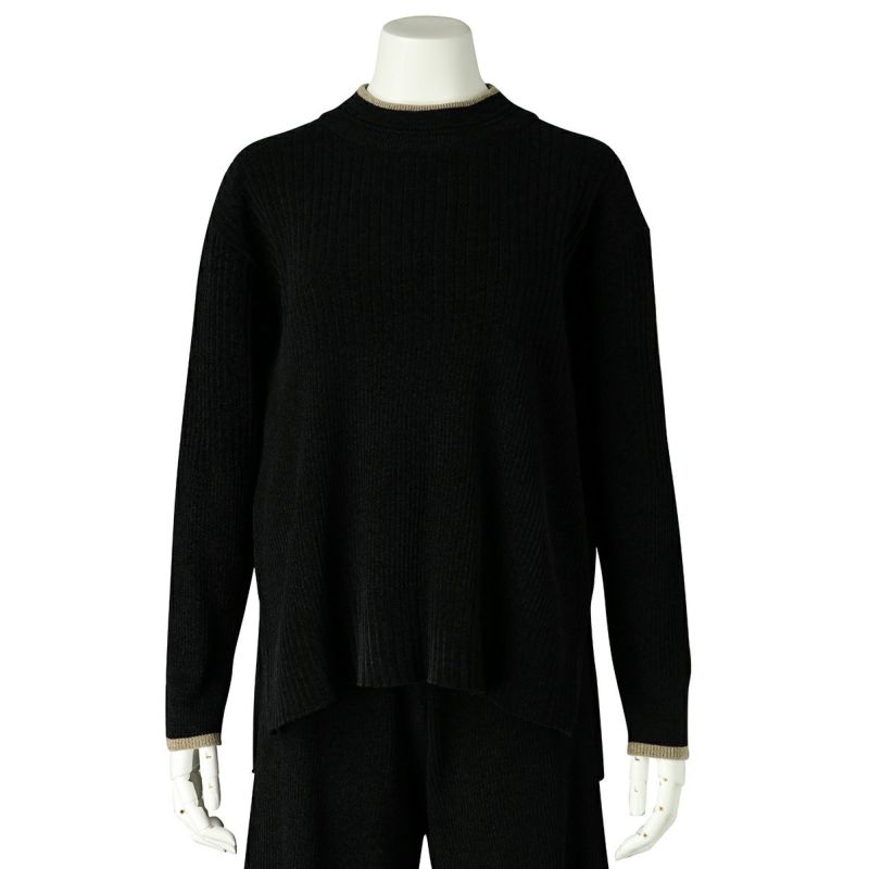 長袖トップスは、襟に少し高さのあるモックネックタイプ。ボーダーレスなデザインでワンマイルにもおすすめ。配色の細ラインがポイント。
