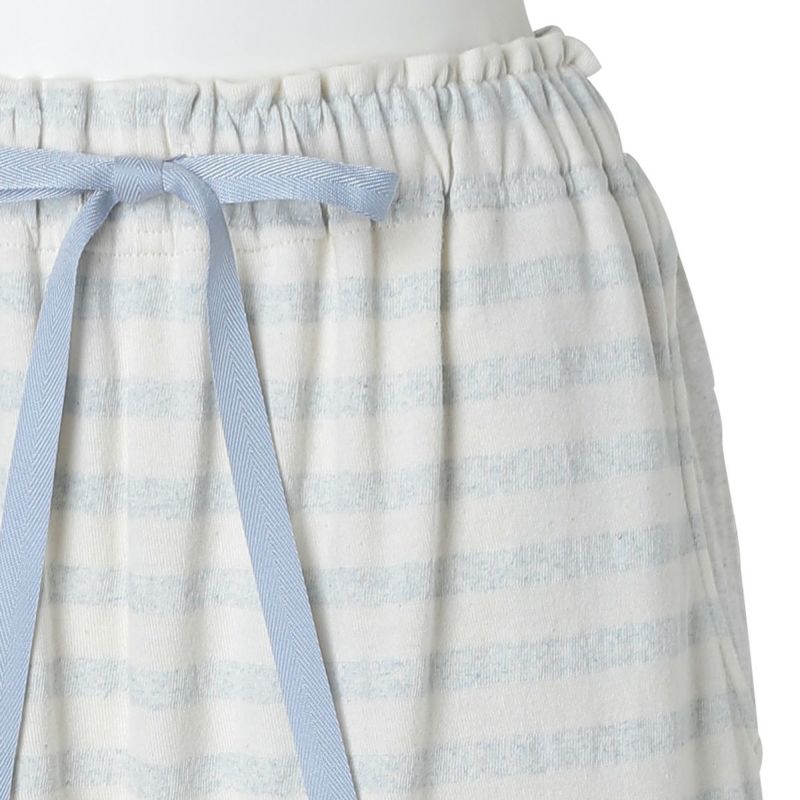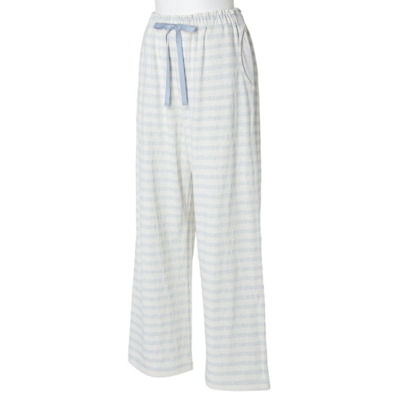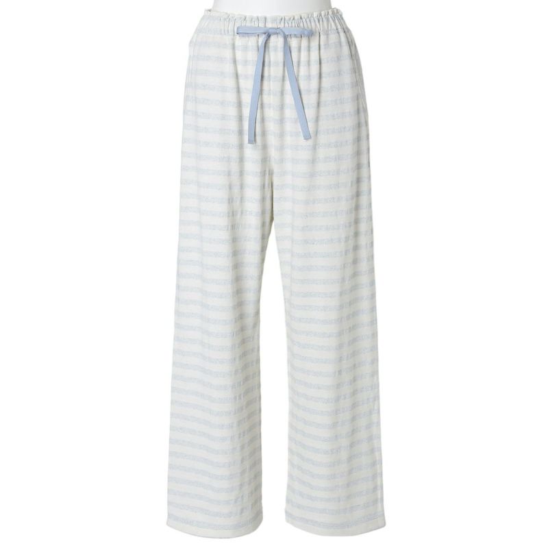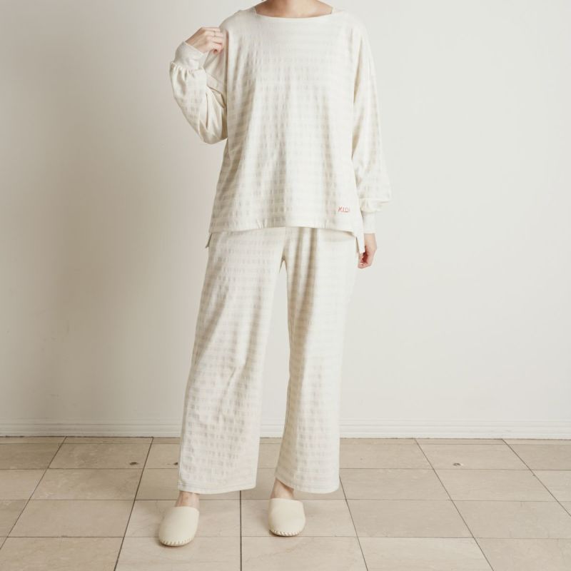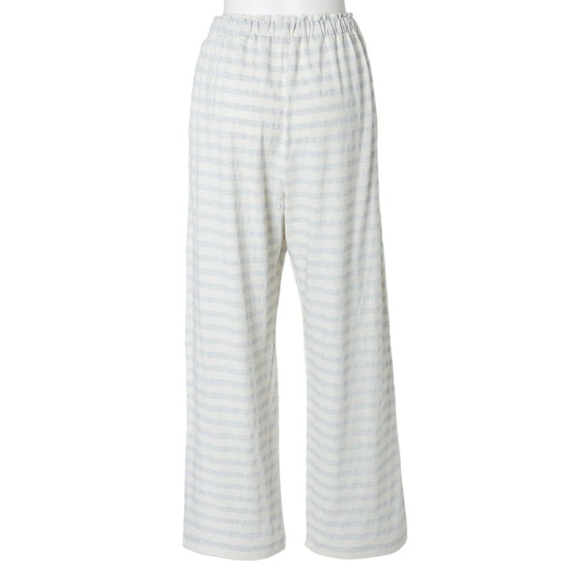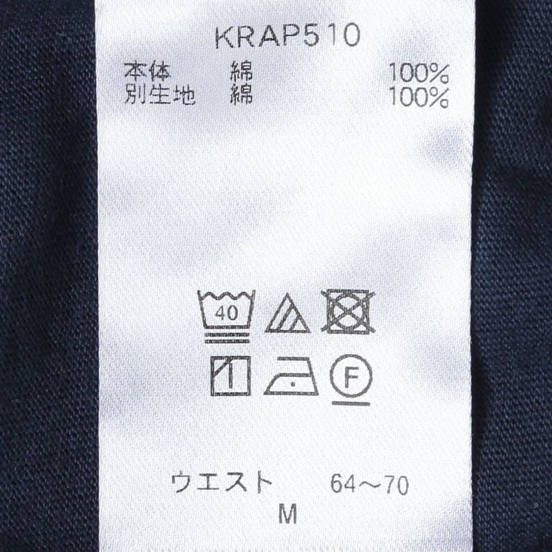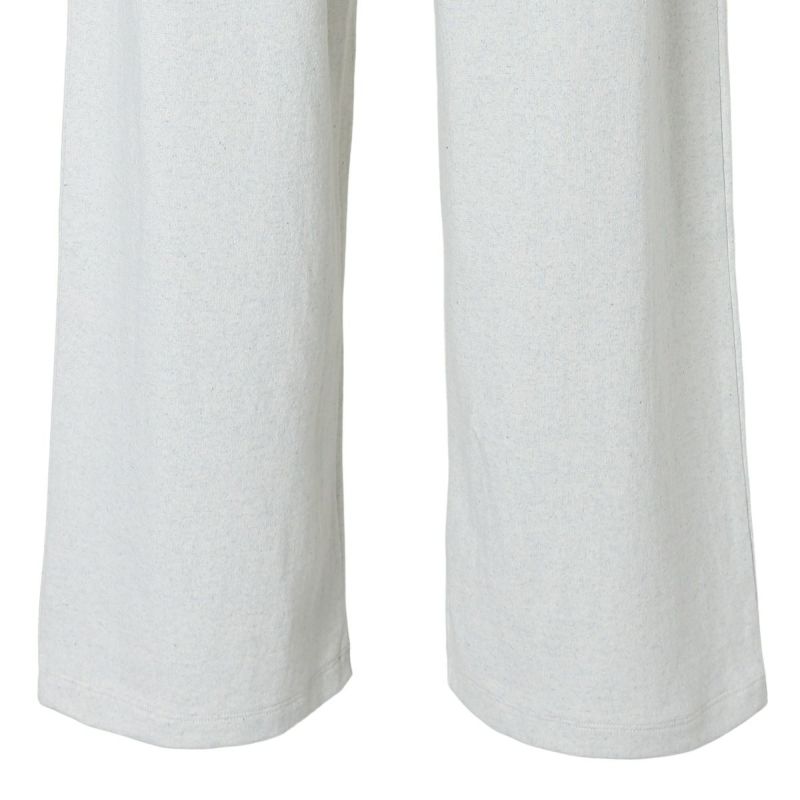 すとんとしたストレートシルエットのフルレングスボトムス。ポケットはカッティングをカーブにすることで、配色布がさりげなく見え隠れする細部にまでこだわったデザイン。