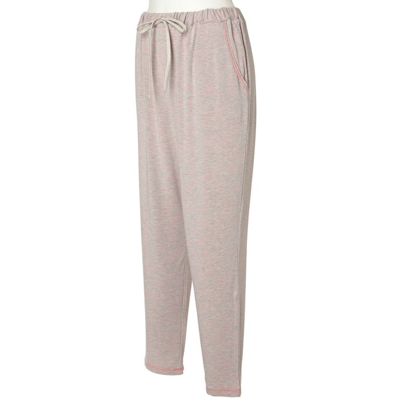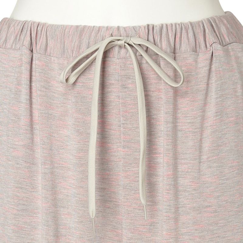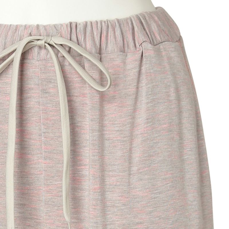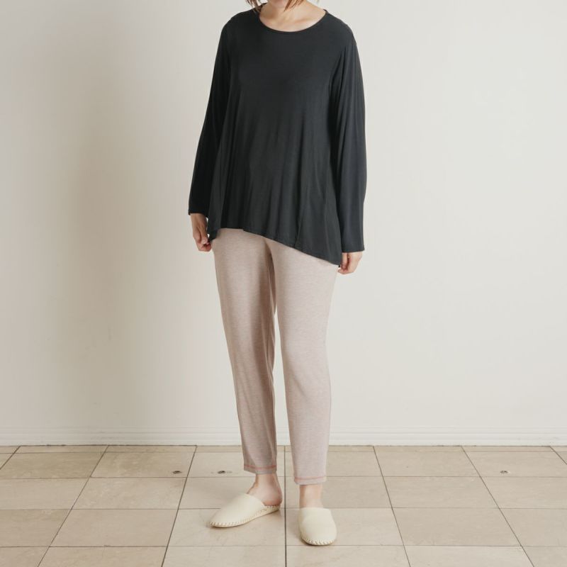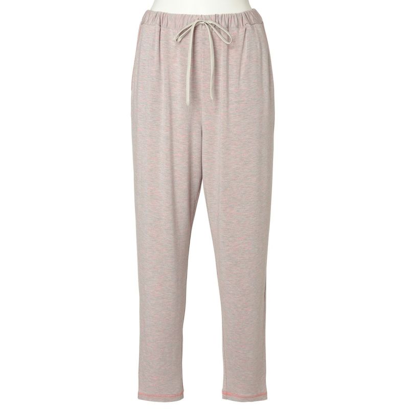 フルレングスボトムスは、裾に向かって絞った細見え効果のあるシルエット。どんなトップスとも合わせやすくワンマイルにもおすすめ。ポケットのステッチとウエストリボンがデザインのポイント。