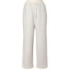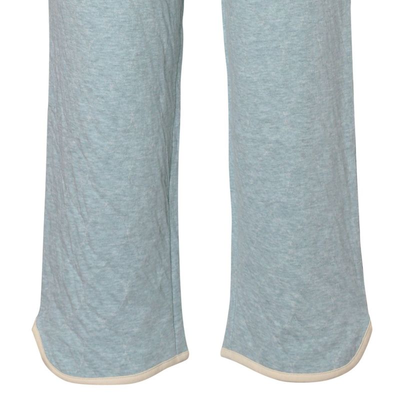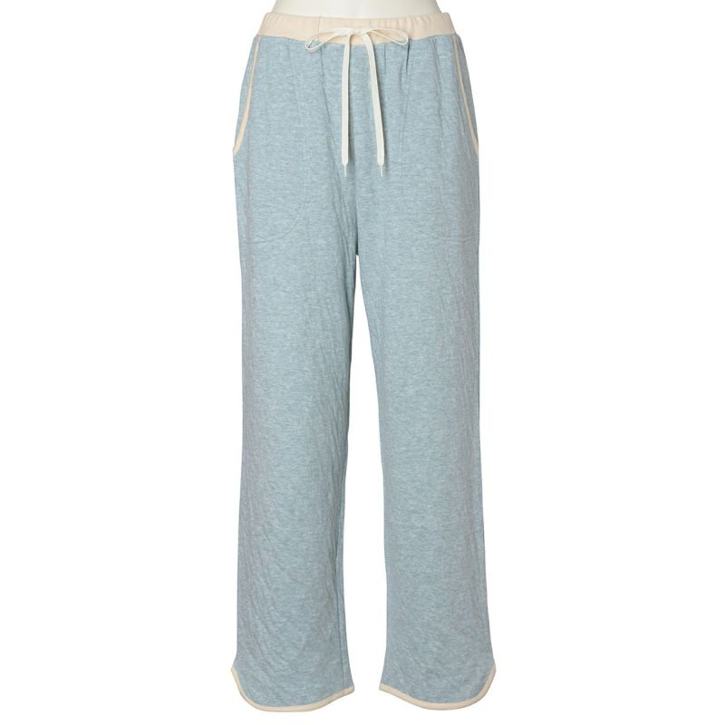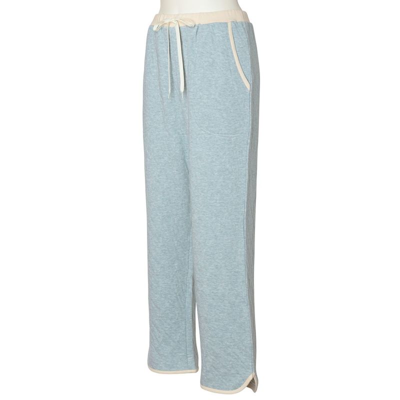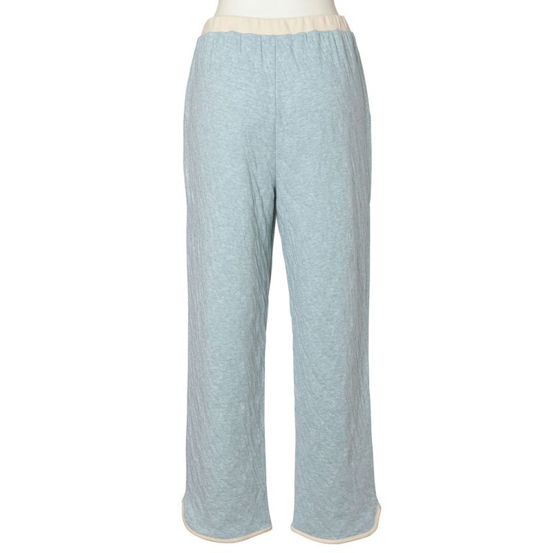 裾にカーブスリットが入ったフルレングスボトムス。裾を折り返してボーダー柄をみせても◎ポケットはステッチを効かせ今っぽさをプラス。ウエストは伸縮の良い生地にインゴムと紐つき。