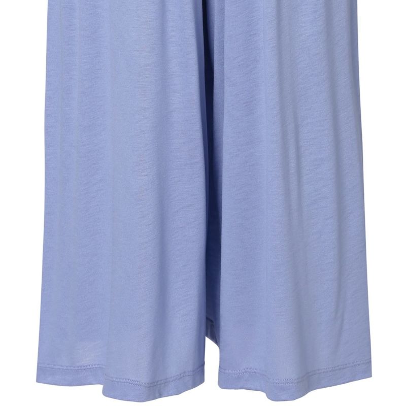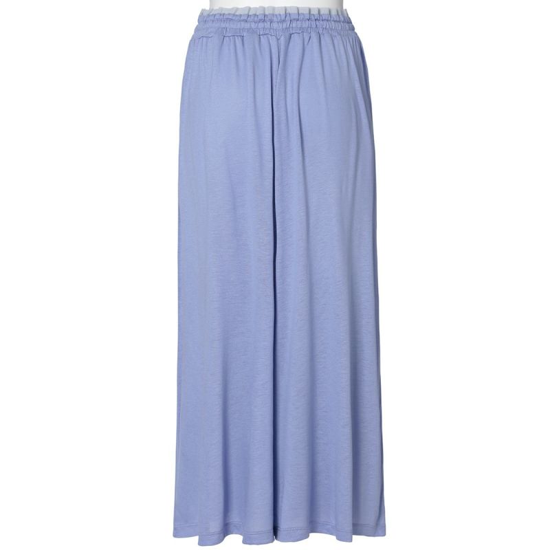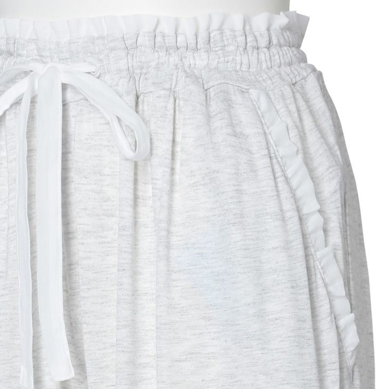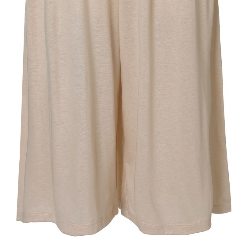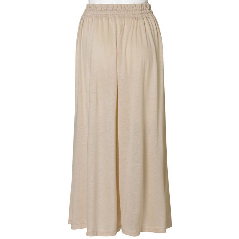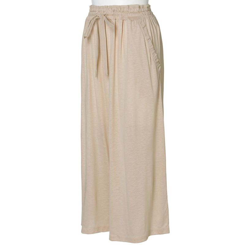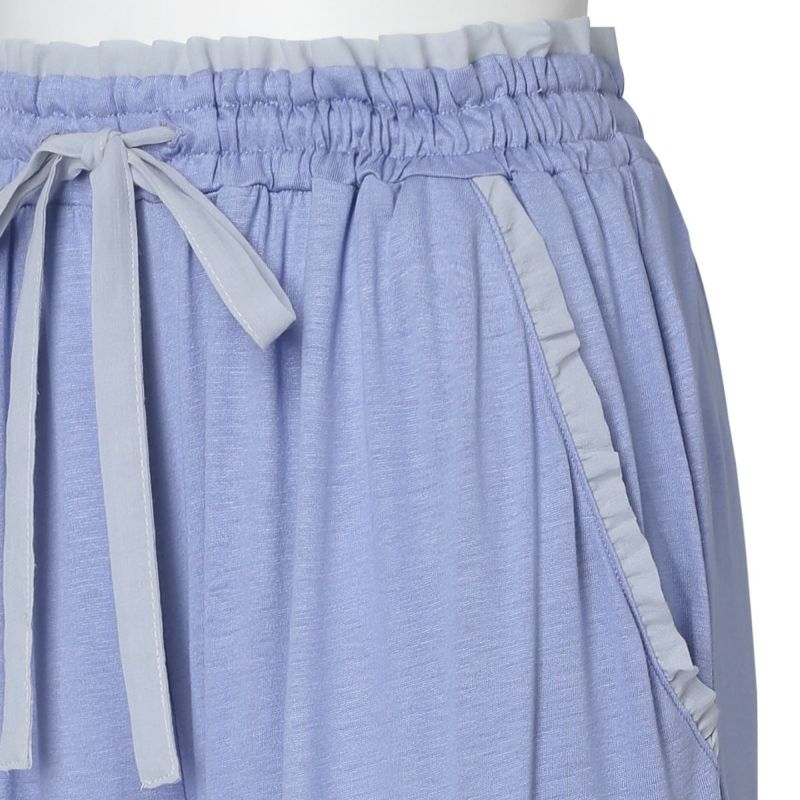レーヨン素材ならではの自然な落ち感が美しい7分丈ボトムス。トップスINでも可愛らしく決まる、ウエストの配色デザインがポイント。ギャザーをたっぷり寄せ肌離れもよく快適な着用感のワイドボトム。ナイトタイムはもちろん、休日のリラックスタイムにもおすすめです。