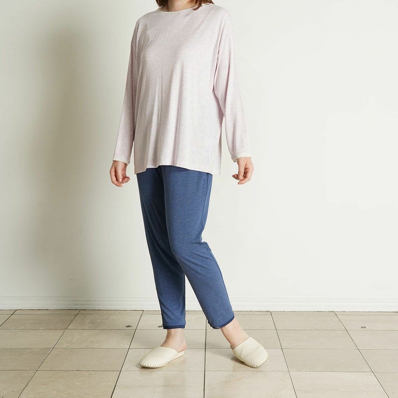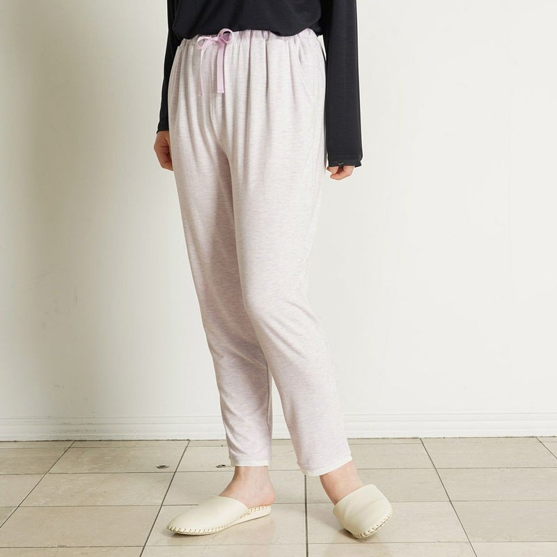 フルレングスボトムは裾に向かって絞ったデザインで、すっきり見えが叶うテーパードシルエット。ほどよい落ち感のあるなめらかな質感で上品さを演出しつつ体の動きにしなやかにフィットするストレッチ性が◎裾に施した透け感のあるパワーネットがデザインのアクセントに。同素材のトップス(KRCN513・KRCN313)とのコーディネートがおすすめです。