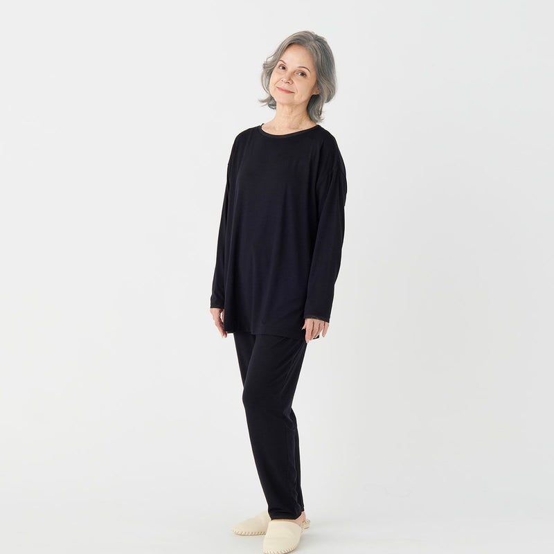 毎シーズン好評の人気定番素材「レーヨンベア天」シリーズ。なめらかでとろみのある素材感。ストレッチがあるため着心地がよく活動しやすさも魅力です。シンプルながらも細部にこだわったディティールが日常に寄り添います。カラーは着回し力抜群なネービー、ブラックとニュアンスがあり美しいラベンダー、新色として明るく映える「ピンク」が登場。