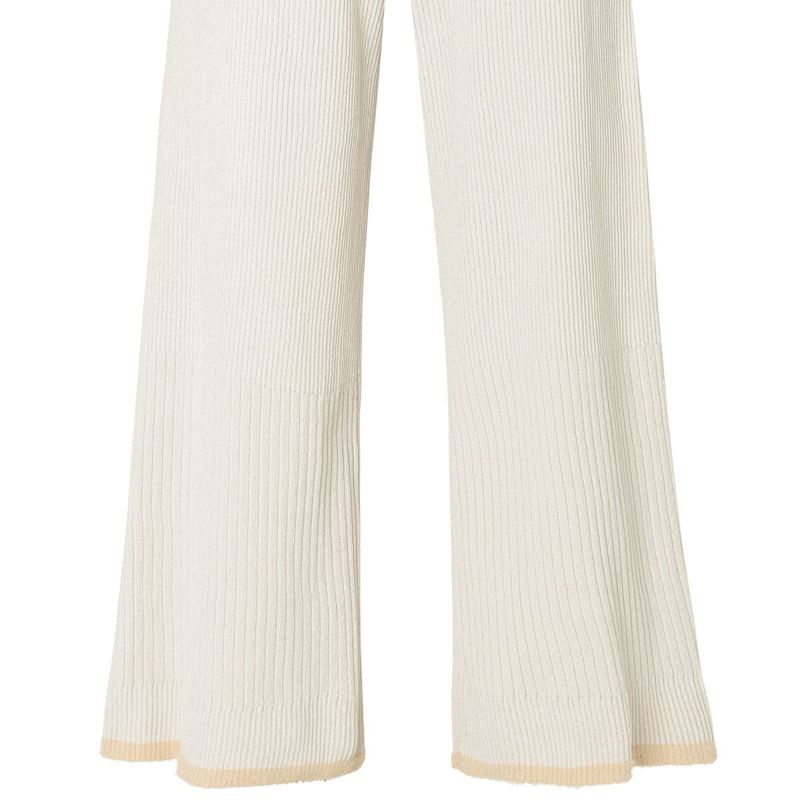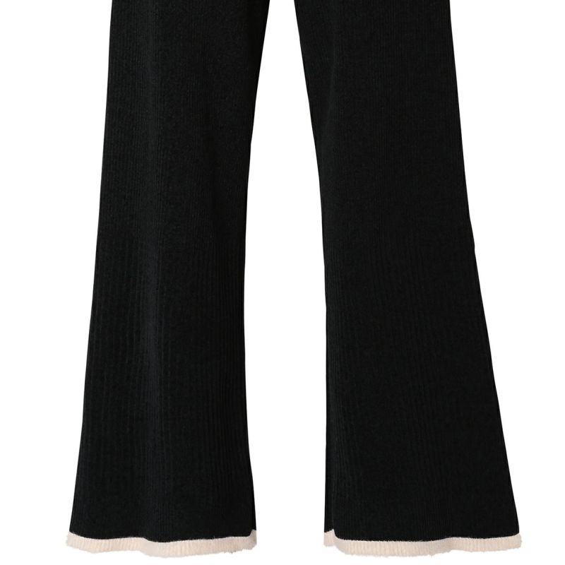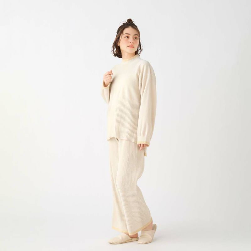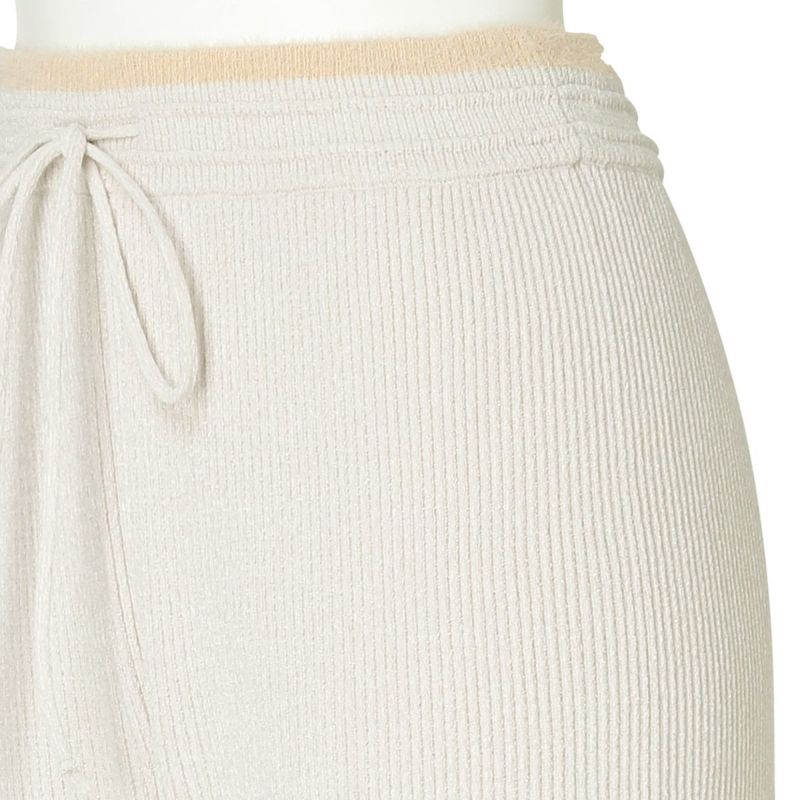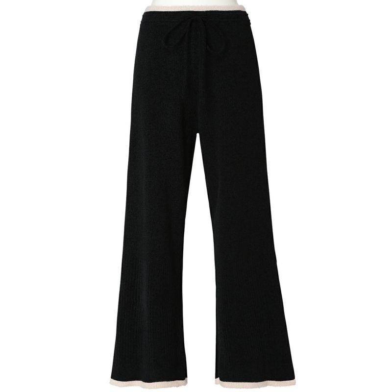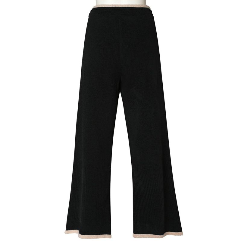 リラックス感がありながら上品な印象のワイドパンツ。様々なリブ編地を組み合わせ、こなれた印象に。ウエストにはふわふわの配色シャギーを施し華やかなポイントに。同シリーズのトップス(KRCO530、KRCN630)と合わせ、セットアップとしてもおすすめです。