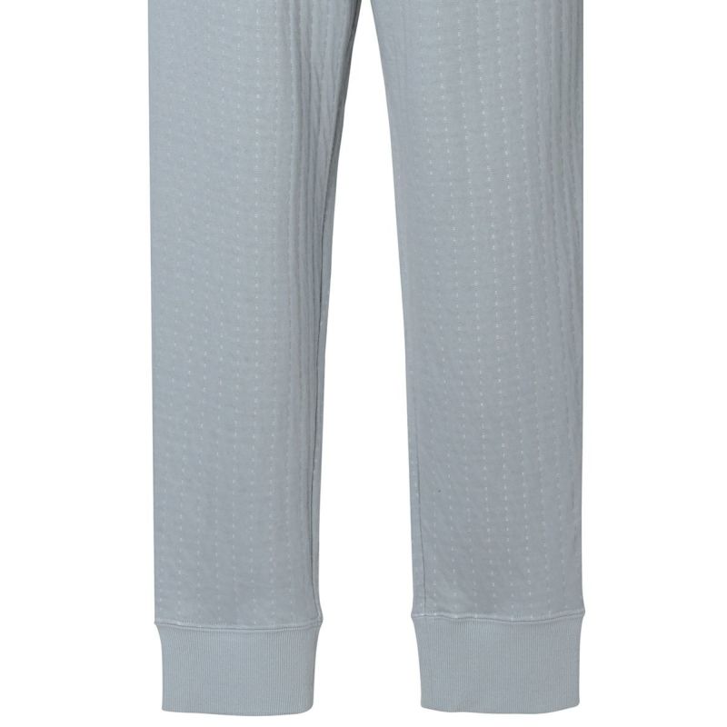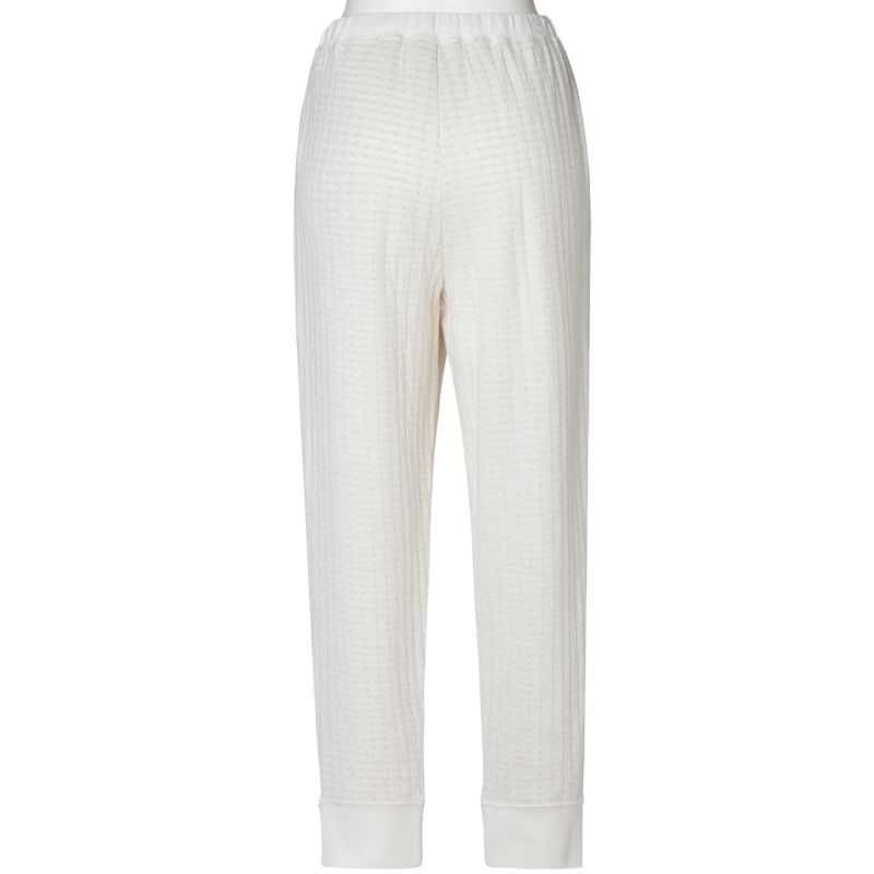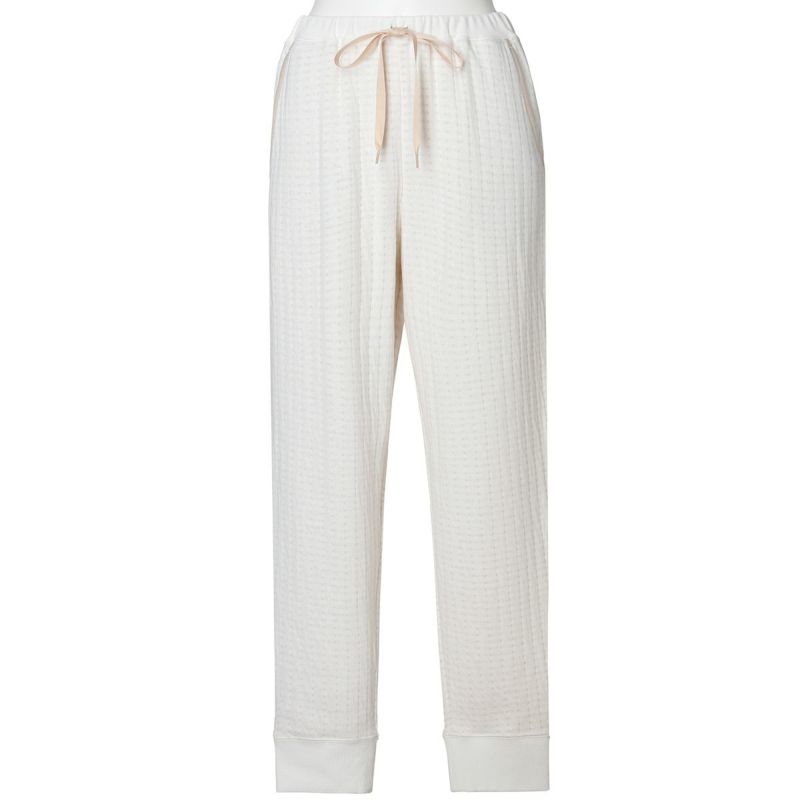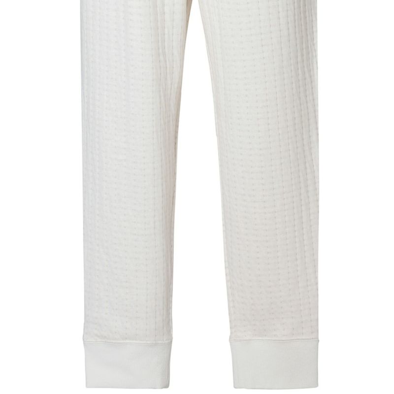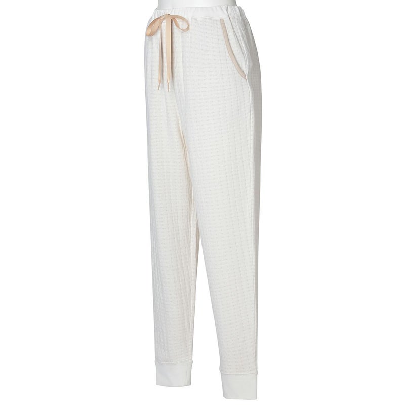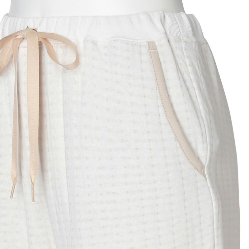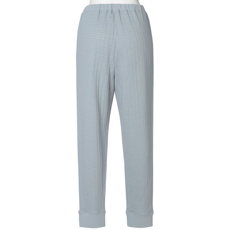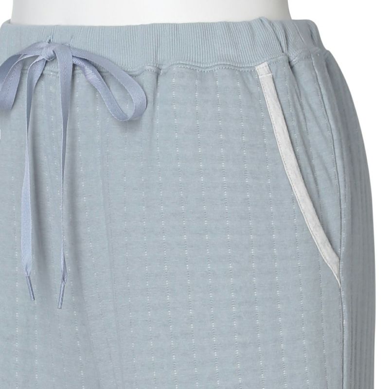 裾をリブに切り替え絞ったすっきりとしたシルエットのフルレングスボトム。足首にほどよくフィットし動いた時もずれあがりにくく安心です。また冷たい空気が入りにくくあたたかさをキープ。両サイドポケット付きでパイピングがアクセントに。