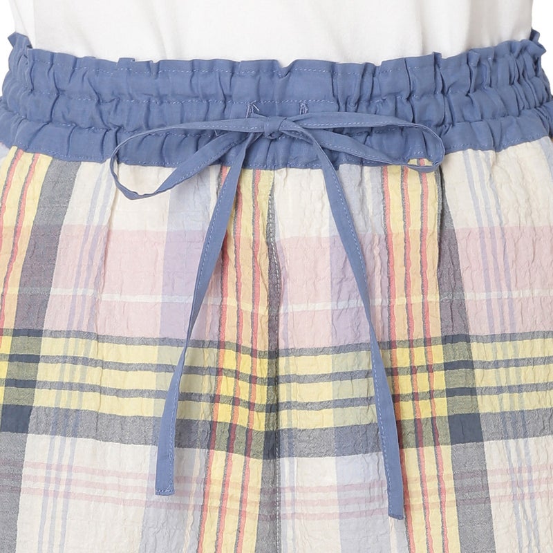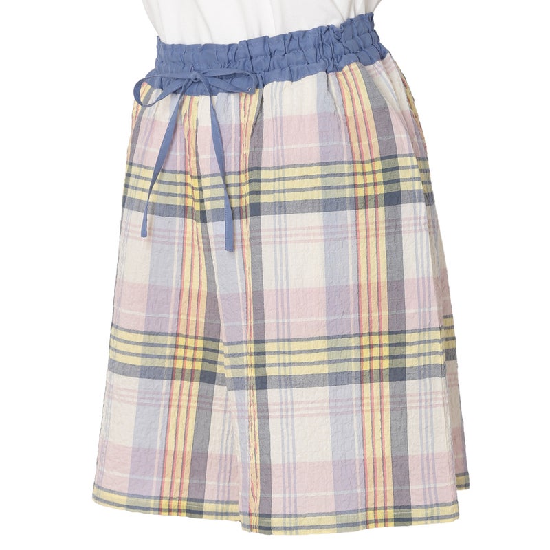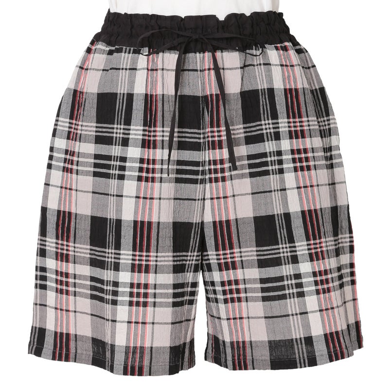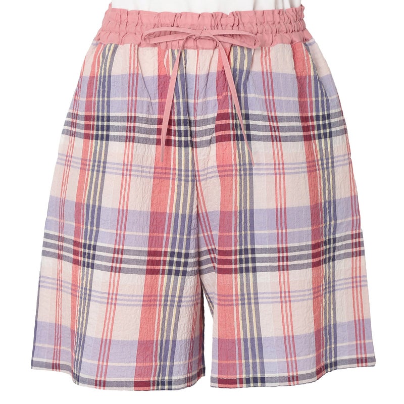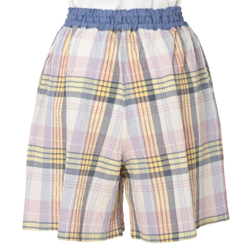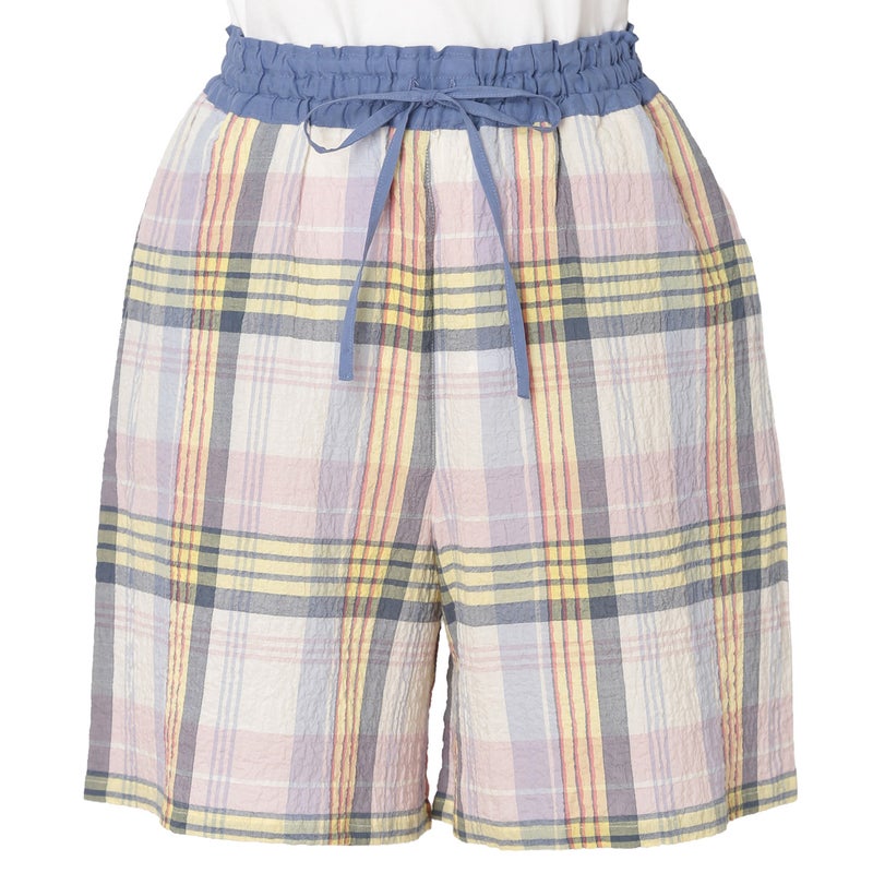 汗ばむ時期も軽やかに過ごせるショート丈パンツ。カジュアルになりがちなアイテムをウエストの切り替えデザインで大人仕様に。トップスの裾をインをしてもきまりやすい。ウエストはゴム仕様に加え調整可能な紐を通しました。両サイドは便利なポケット付き。