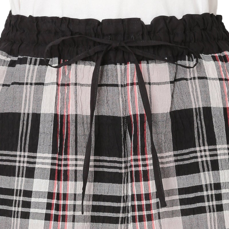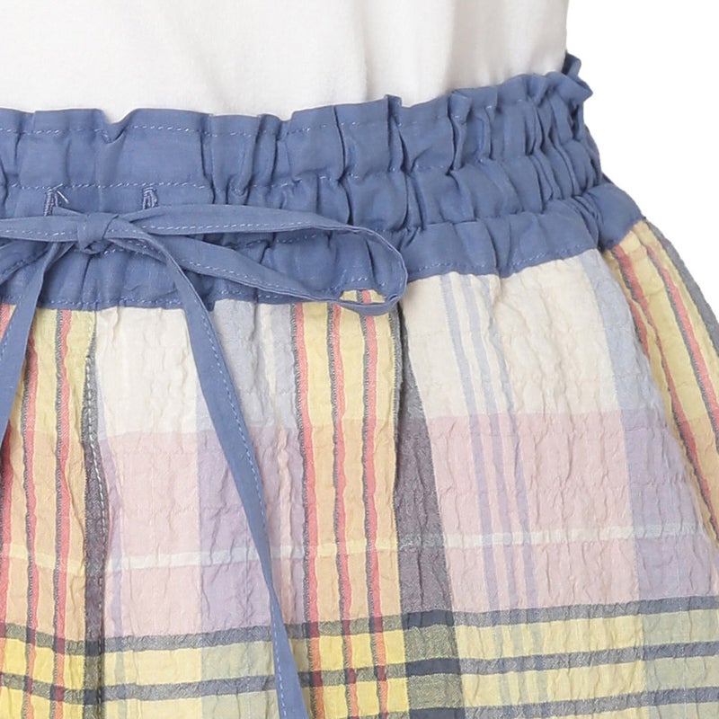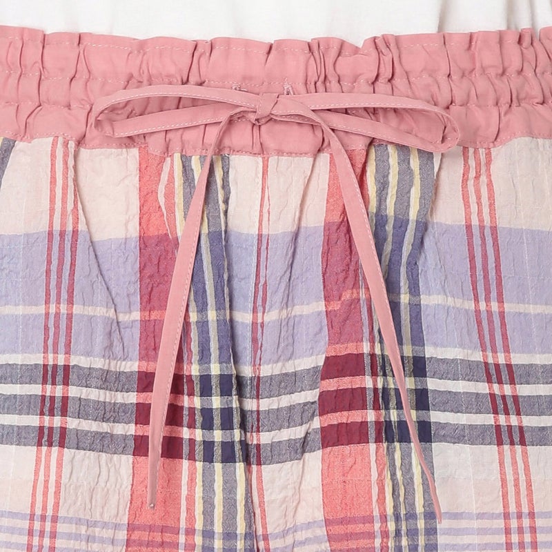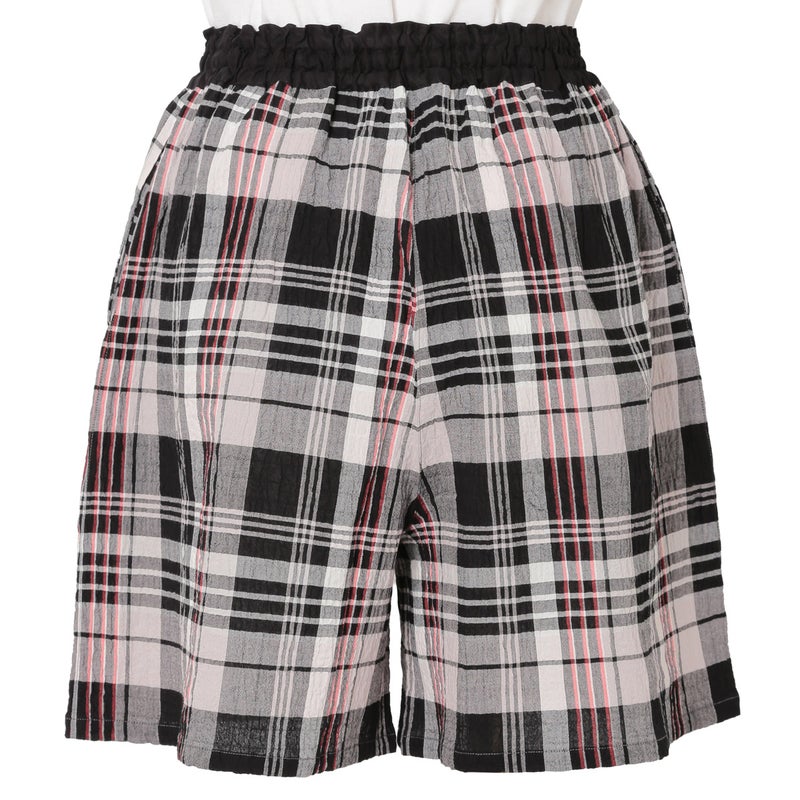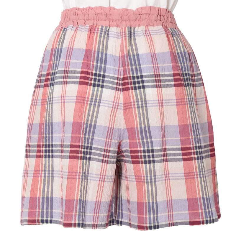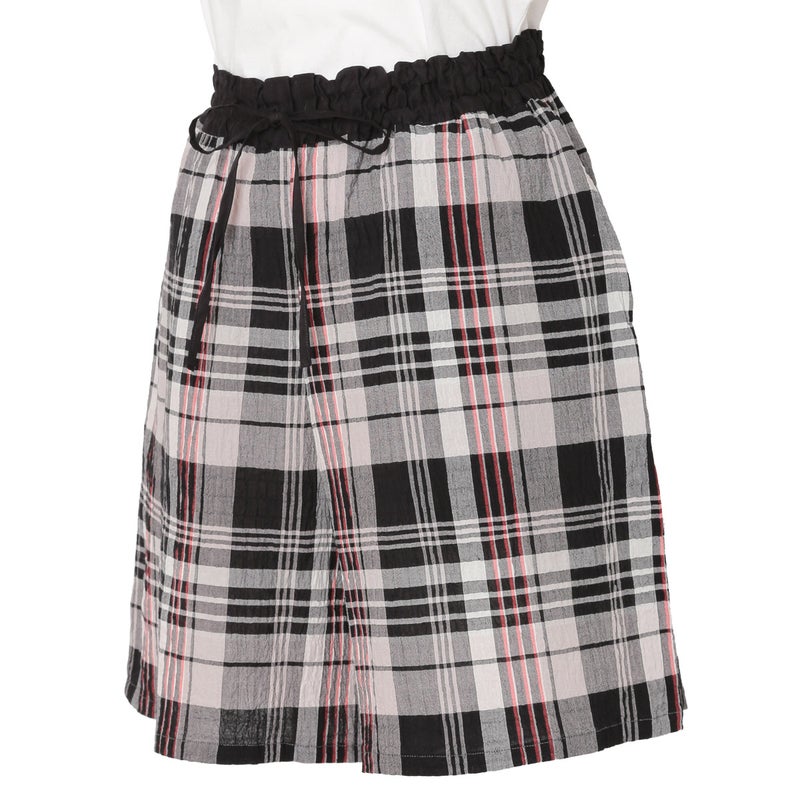 汗ばむ時期も軽やかに過ごせるショート丈パンツ。カジュアルになりがちなアイテムをウエストの切り替えデザインで大人仕様に。トップスの裾をインをしてもきまりやすい。ウエストはゴム仕様に加え調整可能な紐を通しました。両サイドは便利なポケット付き。