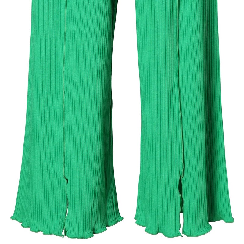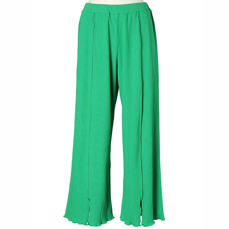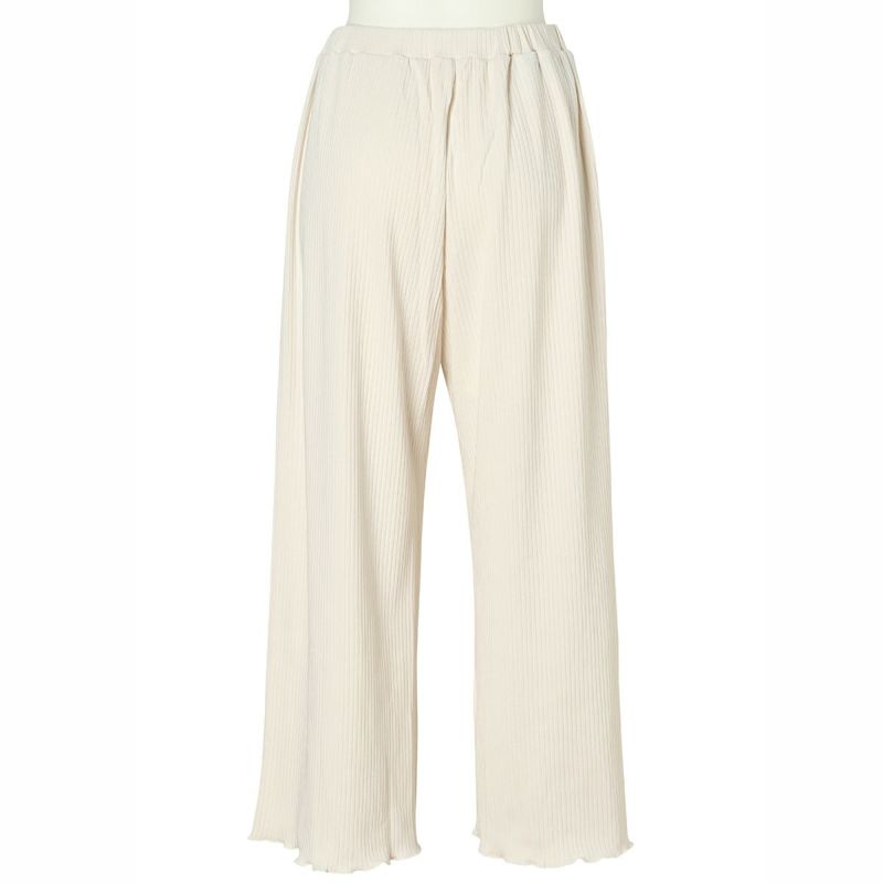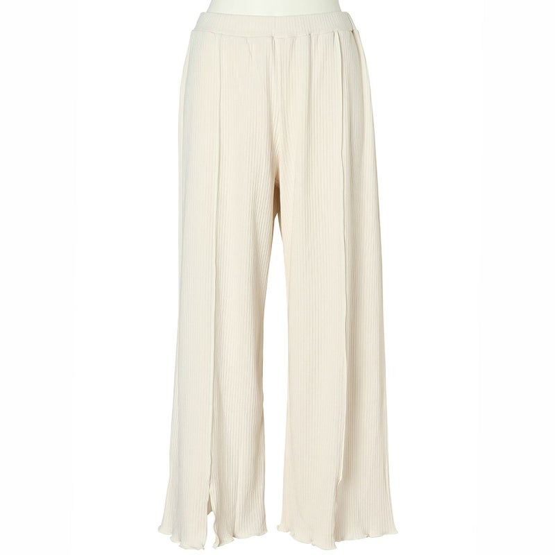 くるぶし丈ボトムスは、センターに入れたメロウがスリットに繋がるデザイン。リラクシーな落ち感のあるシルエット。