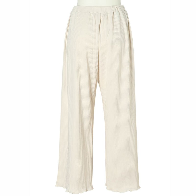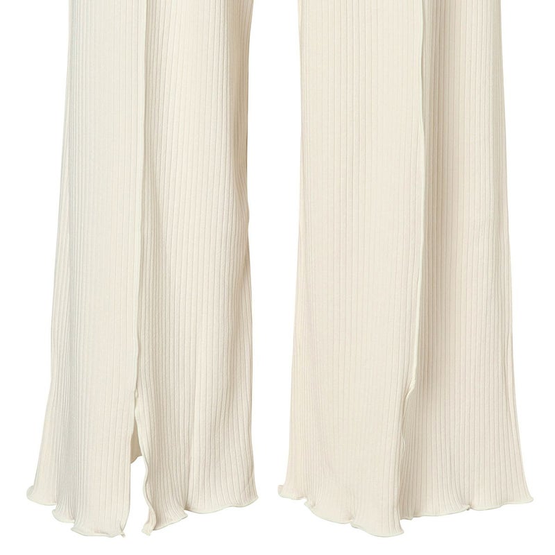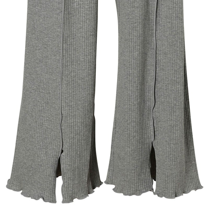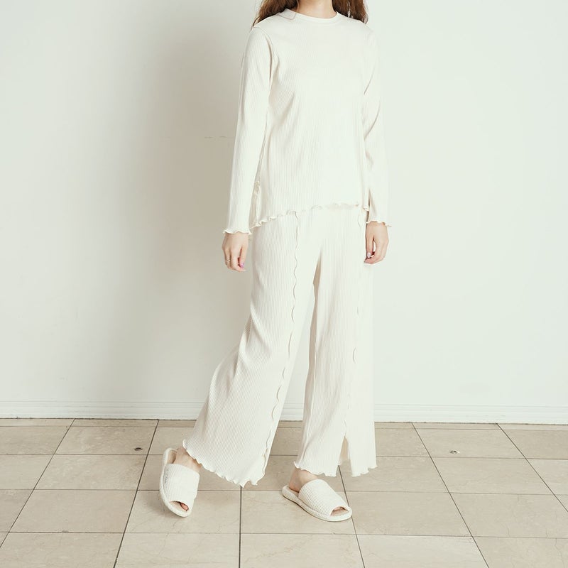 べアテレコ素材のリラクシングウェアシリーズ。リラックス感のあるリブ素材×メロウのトレンドライクなデザインがポイント。程よいストレッチで身体に馴染む着用感。
