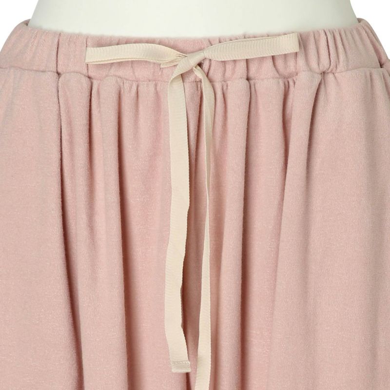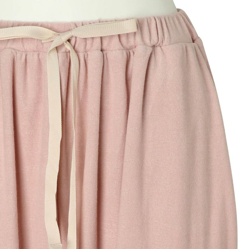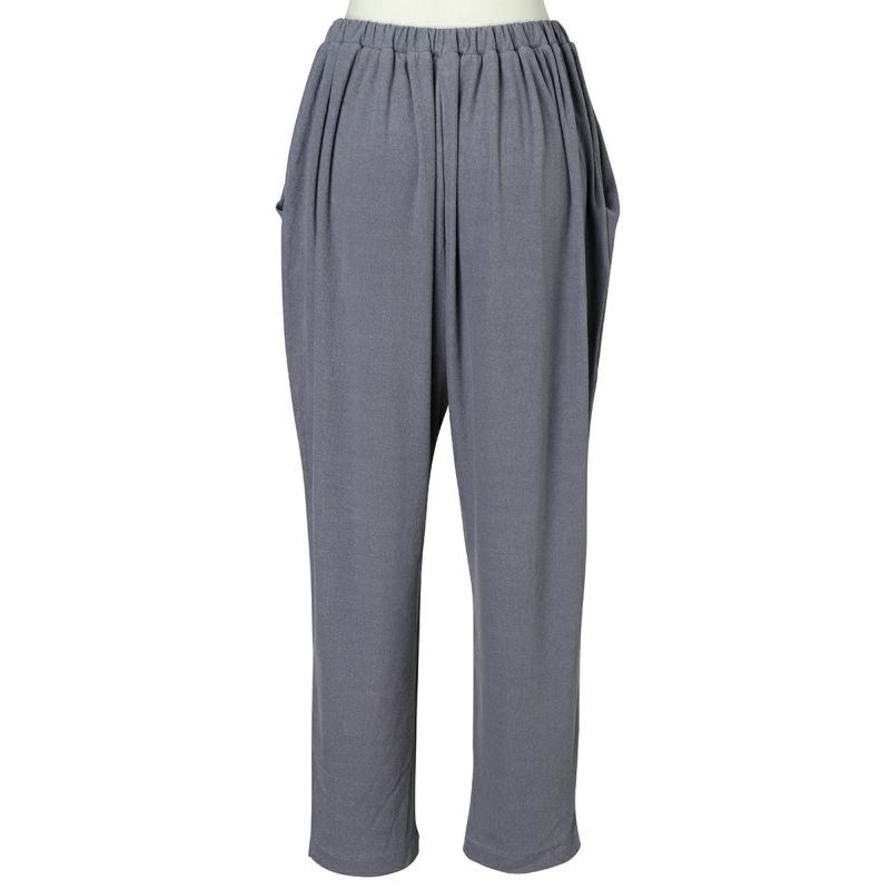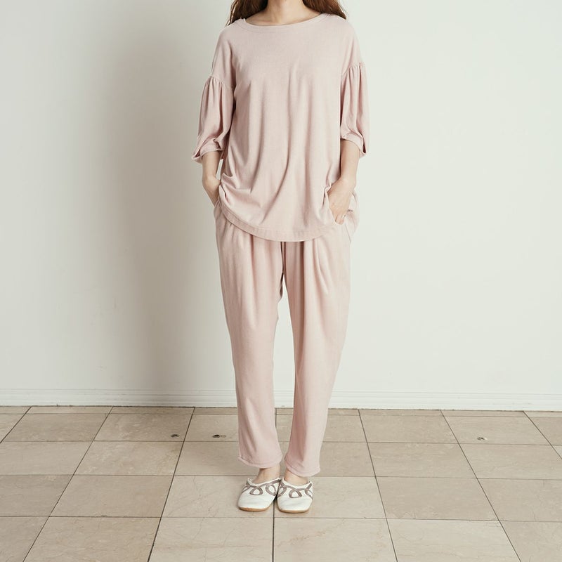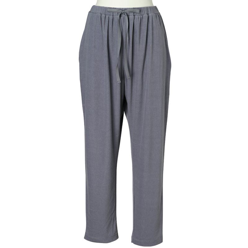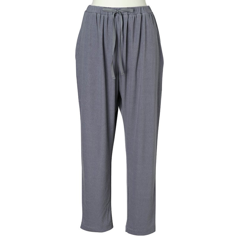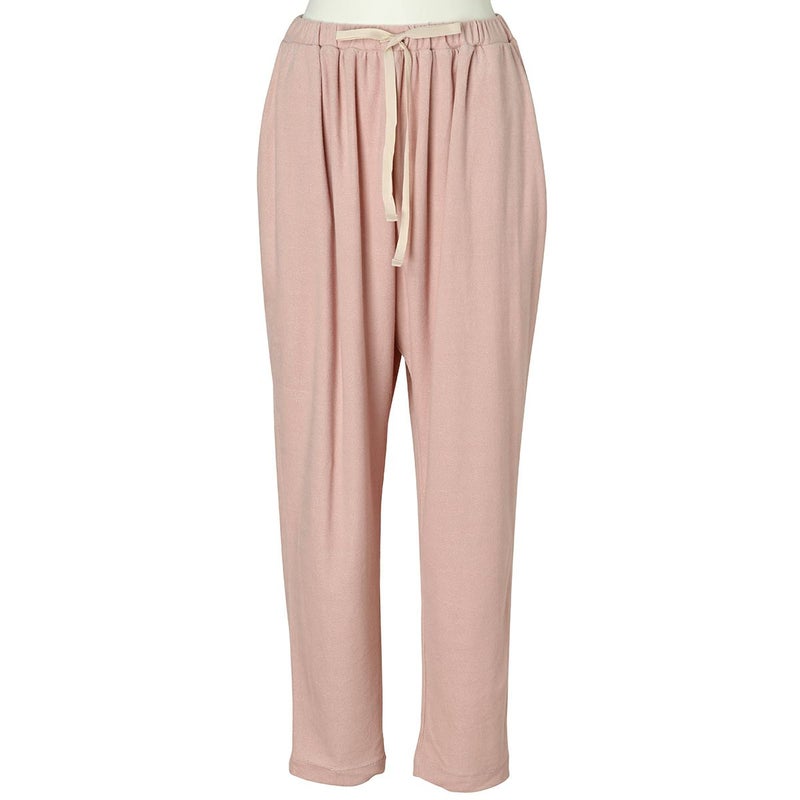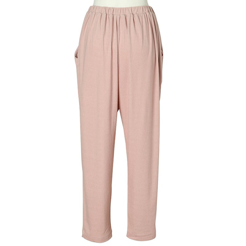 フルレングスボトムスは、ヒップ周りにゆとりをもたせたボディラインが出にくいデザイン。裾に向かって細くなるシルエットで細見え効果も◎