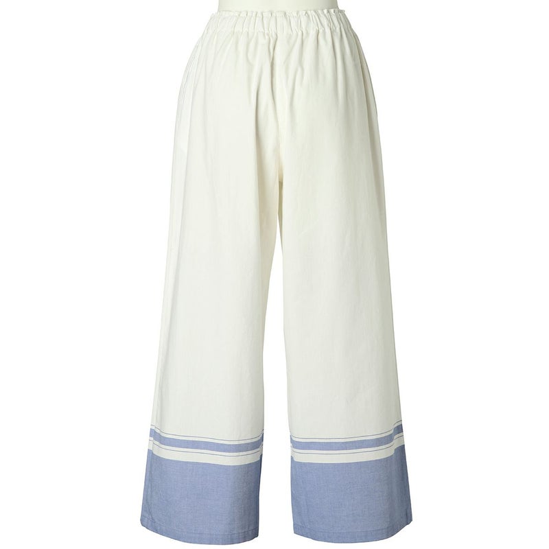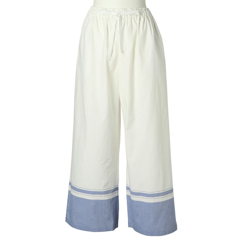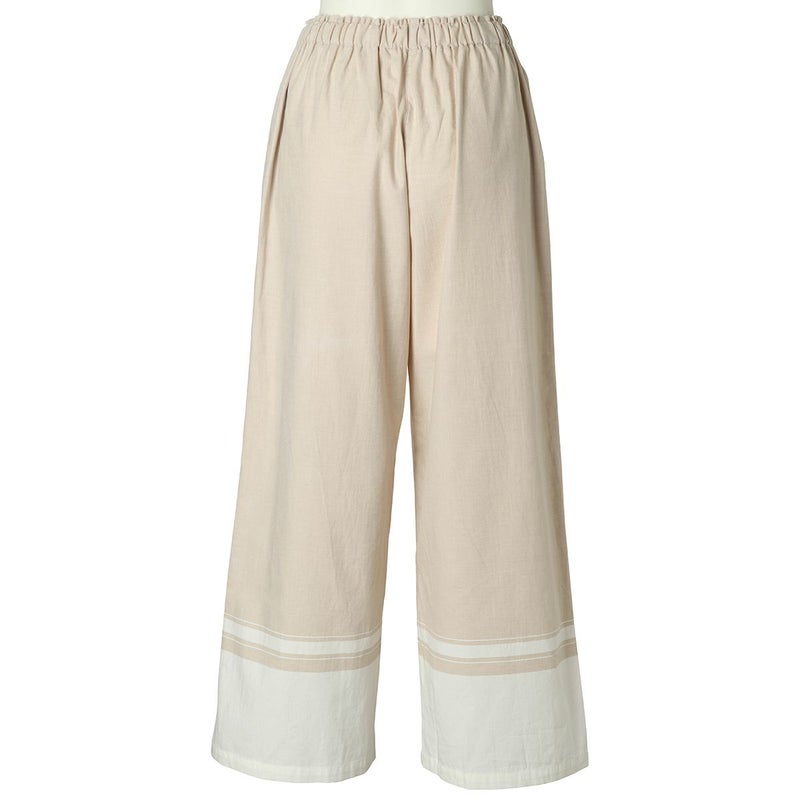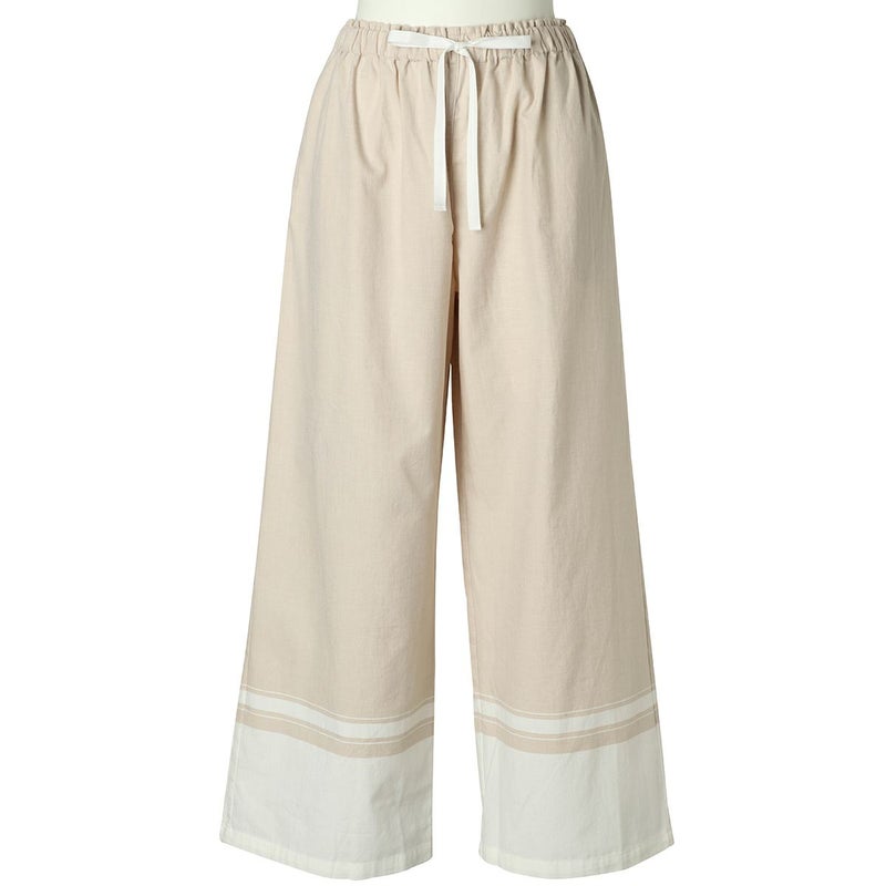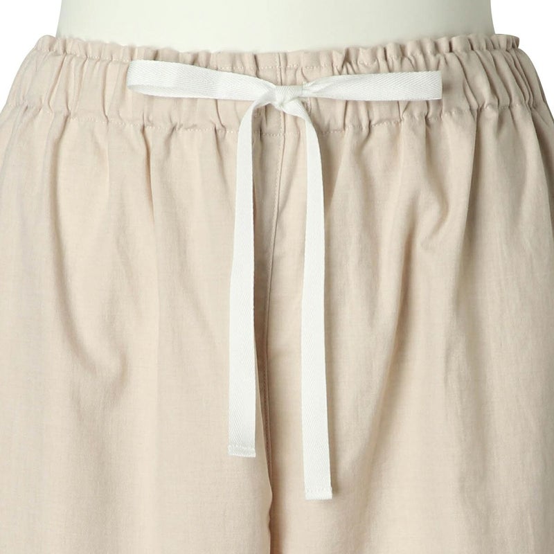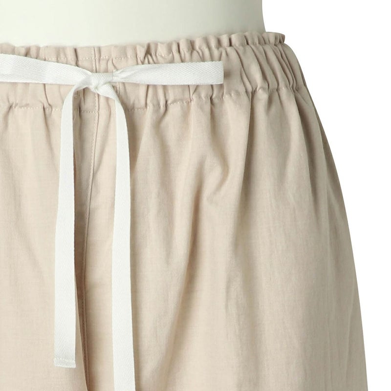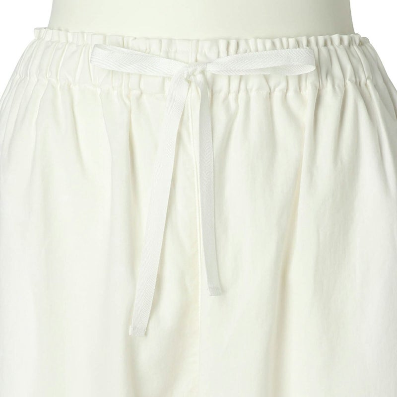 くるぶし丈ボトムスは、ゆったりとしたワイドシルエット。ウエストはギャザー入りで、トップスインコーデもおすすめ。
