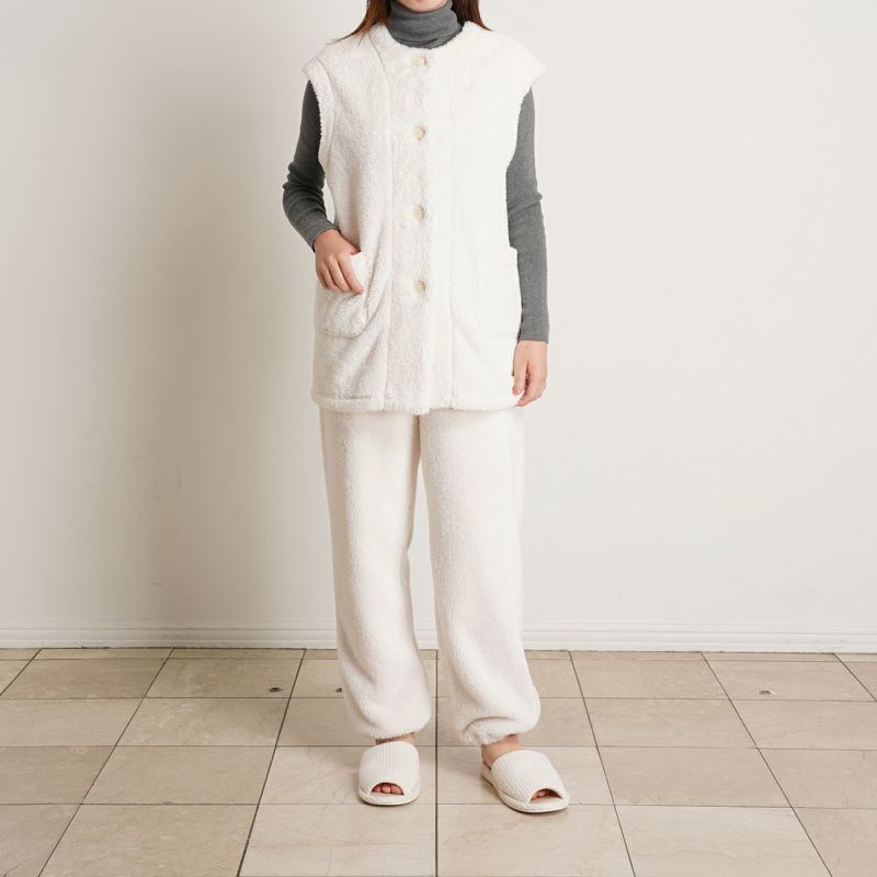 フルレングスボトムスは、ウエスト部分がリブになったお腹周りまであたたかいデザイン。裾はインゴム仕様。