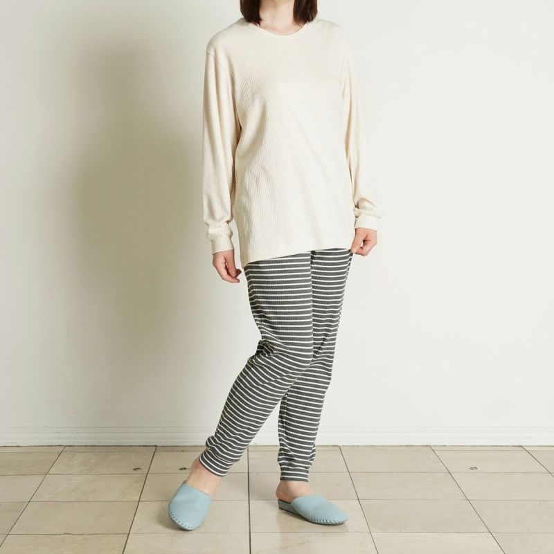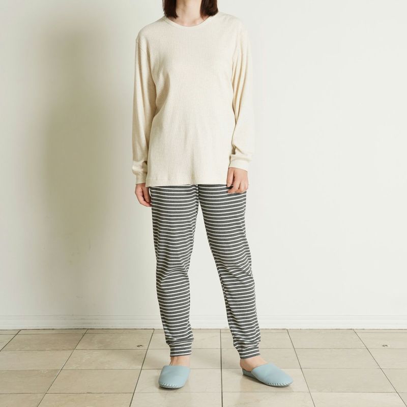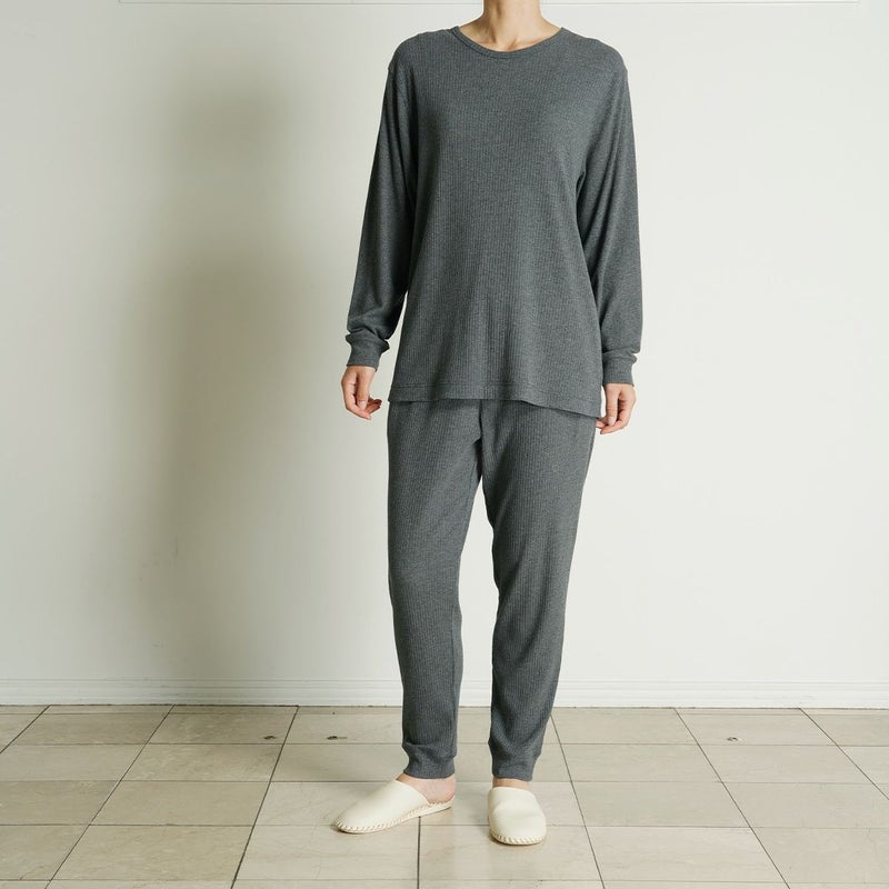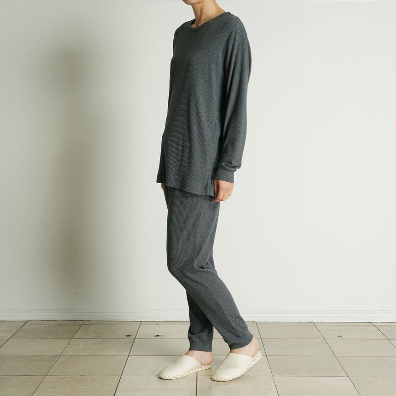 伸縮性のある素材のシンプルなデザインでリラックスウエアとしてはもちろん、ワンマイルウェアとしてもおすすめです。