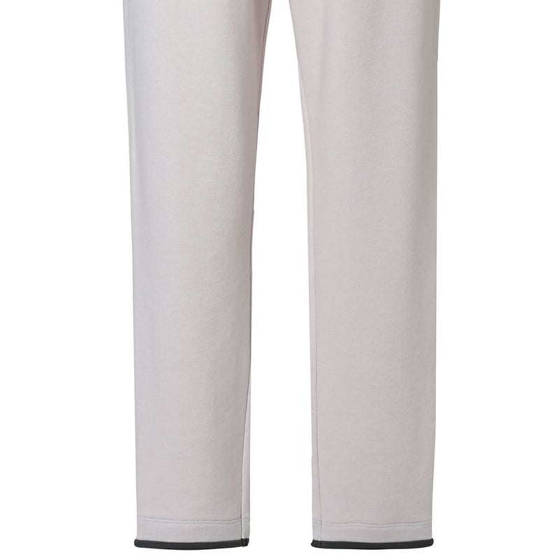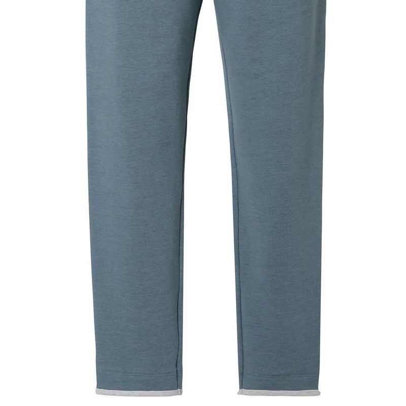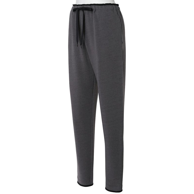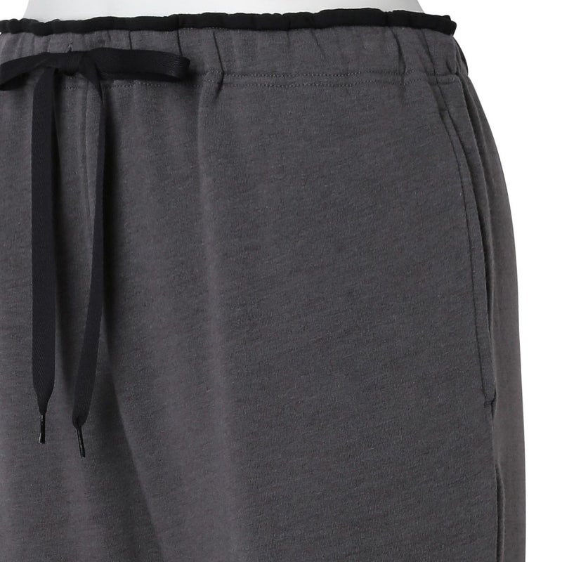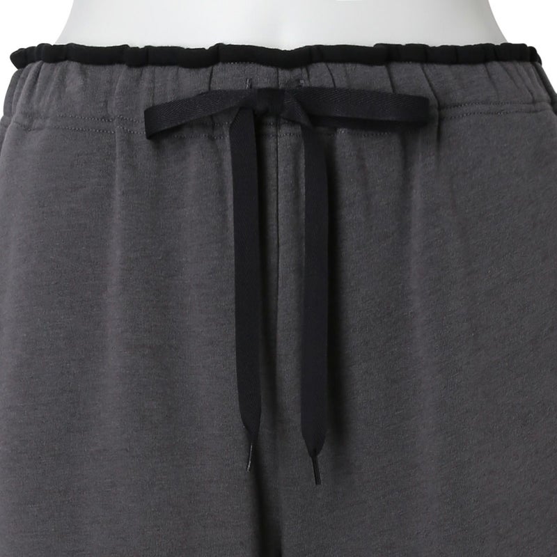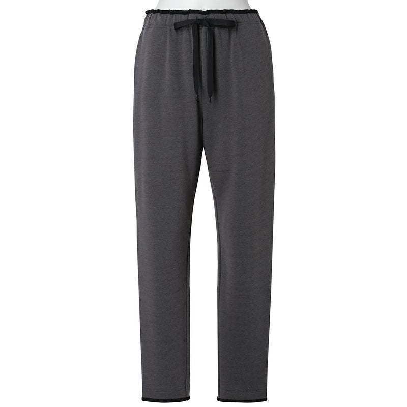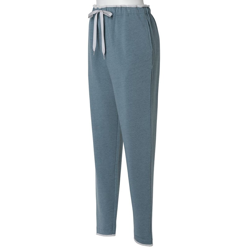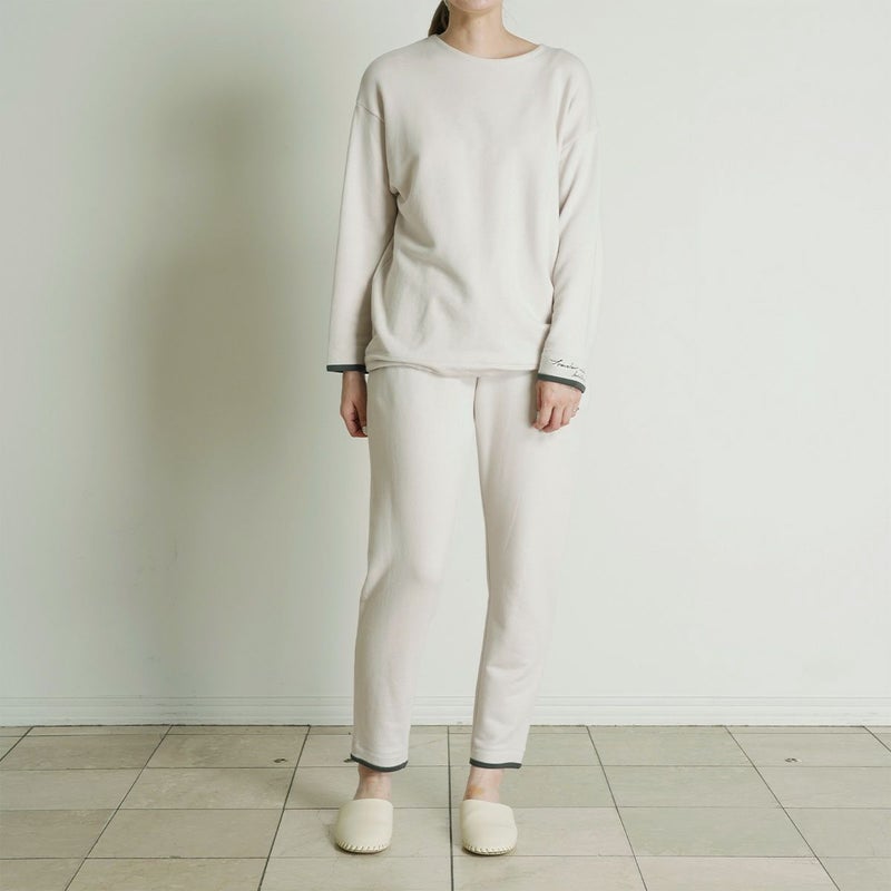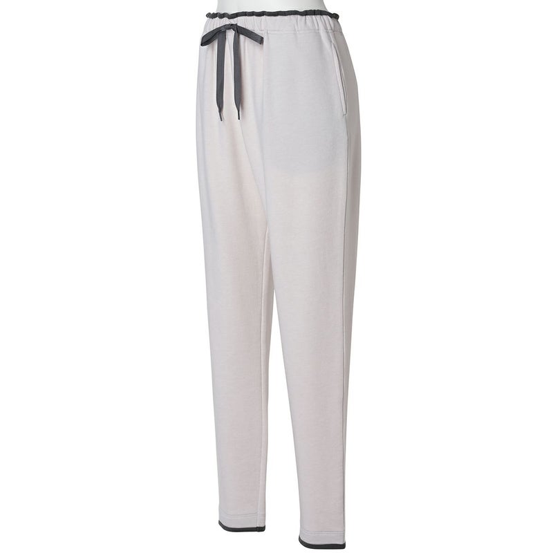 シンプルデザインの中にも、裾口やウエストに別布でさりげなく施した切替や、ポケットの「Traveler with kidblue」の刺しゅうがアクセントになったボトムス。