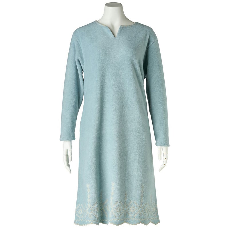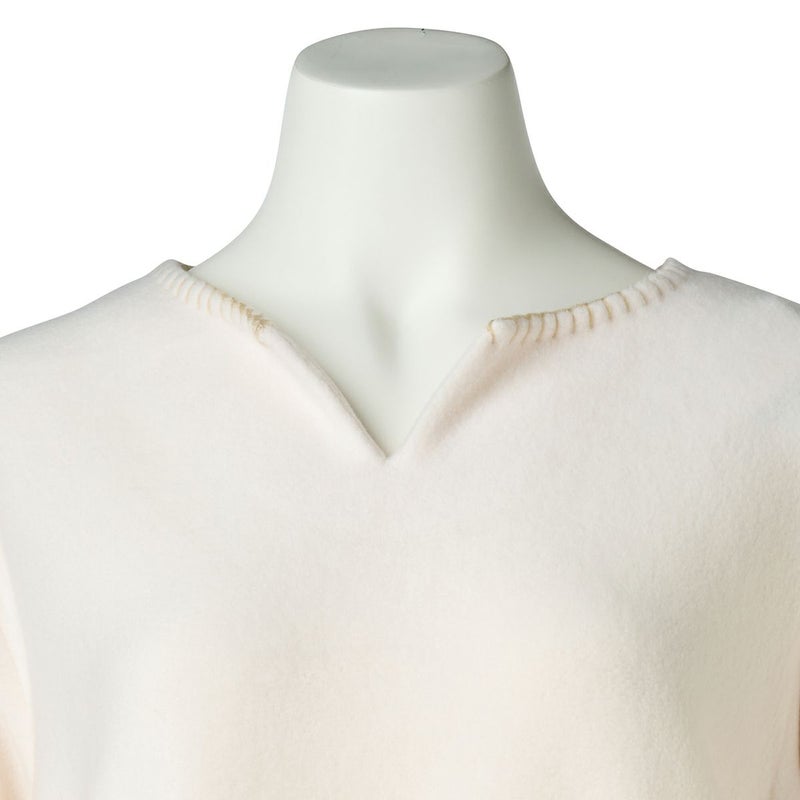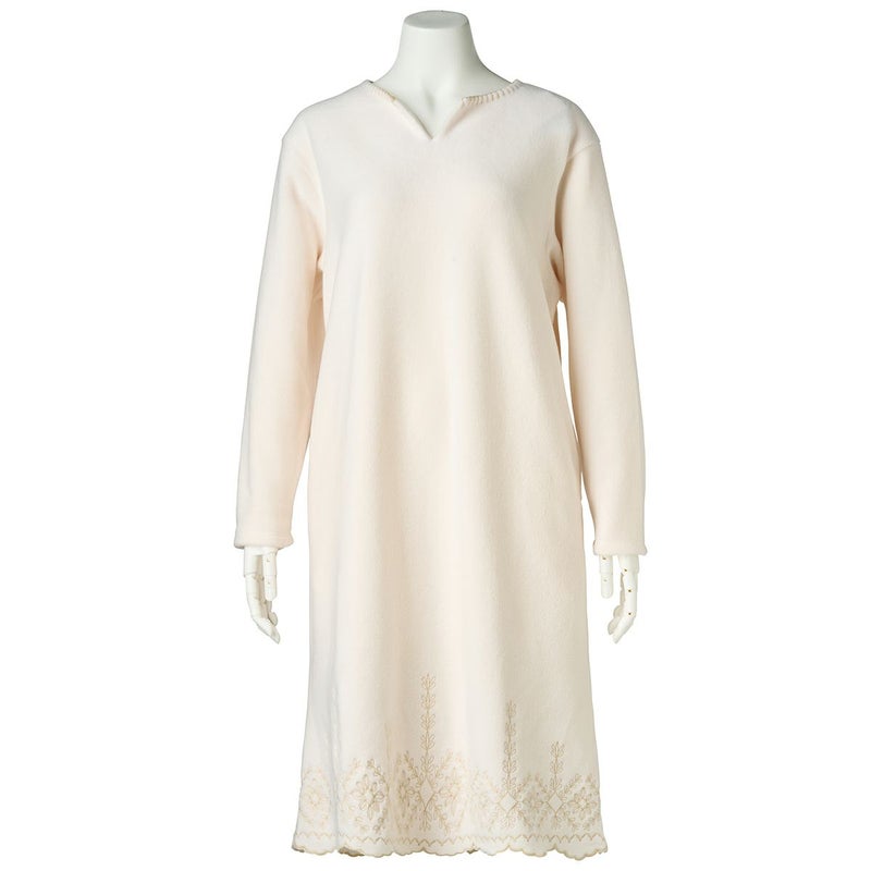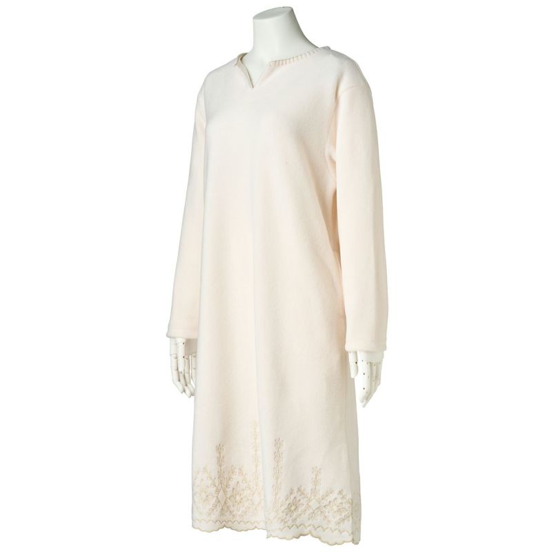 襟元の大き目のステッチがポイントのナイティ。楽に着れるシルエット。