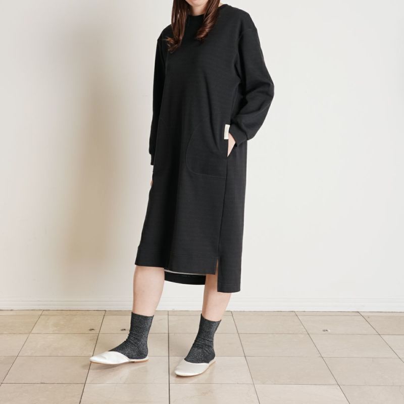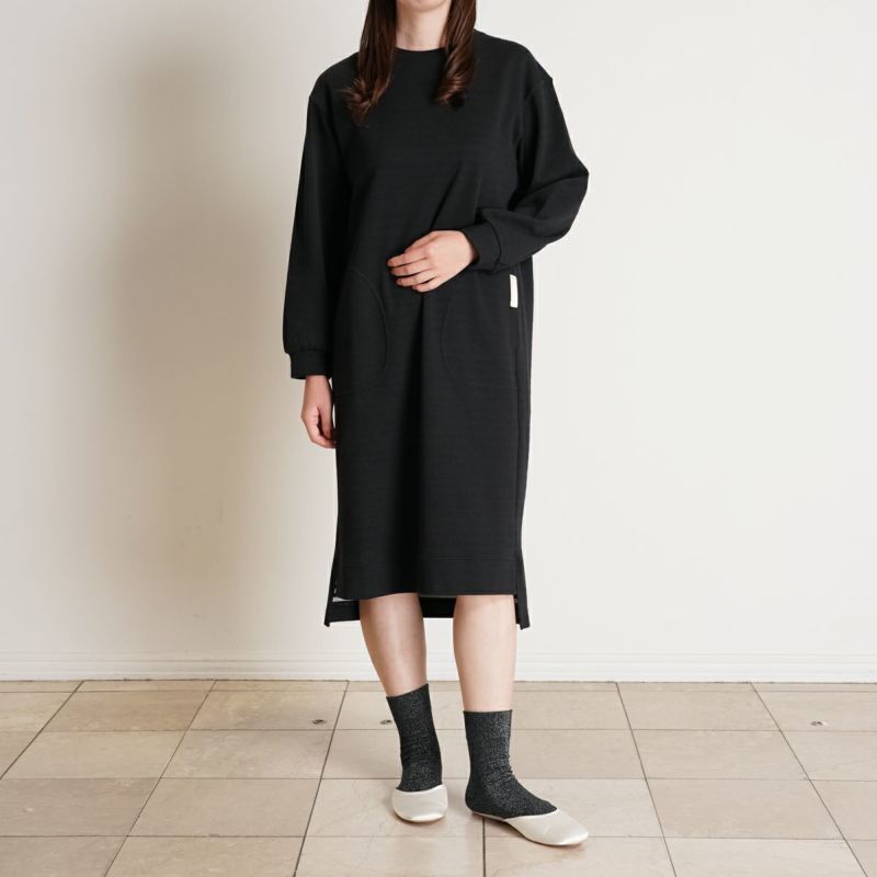 ポケットのステッチがポイントのワンピース。前後身頃で差を出しさりげなく見える裏側のボーダーをアクセントに。ブランドロゴがプリントされたブランドネーム付き。 ※スパッツは付属しておりません。